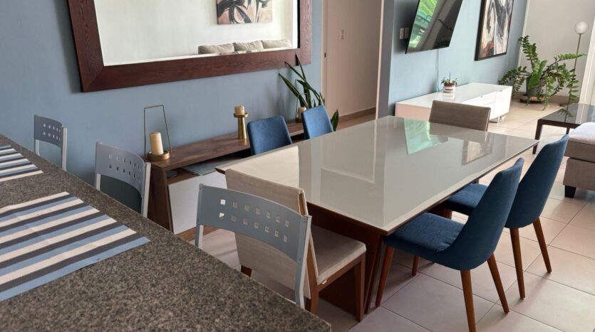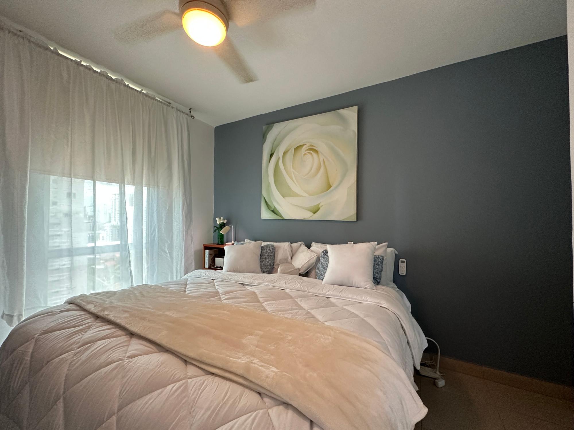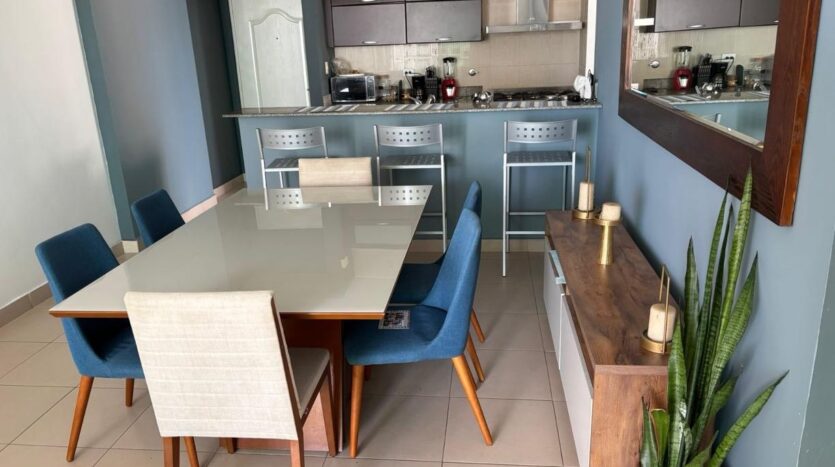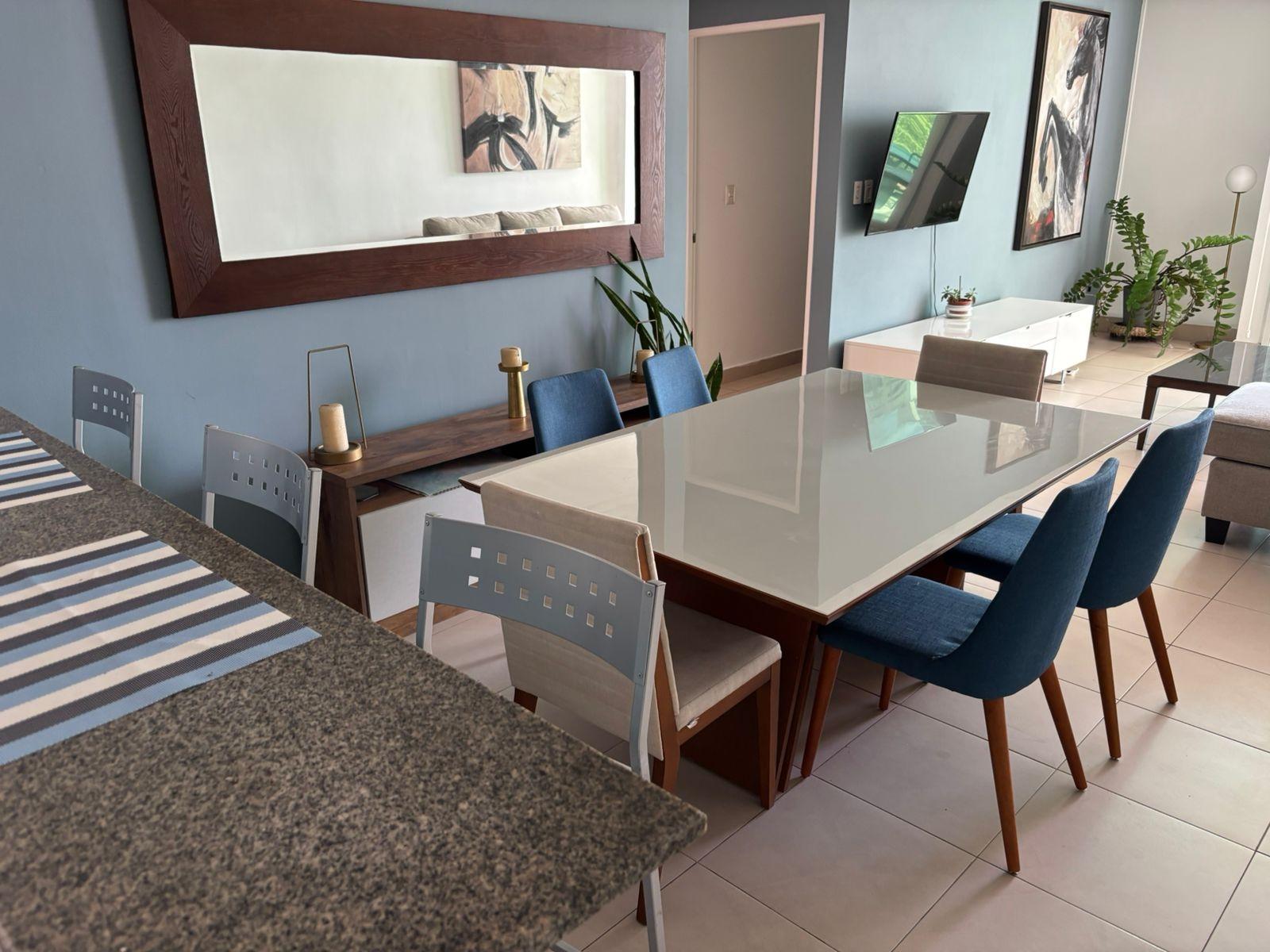 Alquiler Disponible en Marzo 2026 Amoblado y Completamente Equipado Remodelado, 97 m2, 2 recámaras, 3 baños completos, Recámara principal con baño privado, y con doble closet. Segunda recámara con closet lineal, equipada con escritorio Baño secundario completo, Hermosa vista a la ciudad, Balcón Salón comedor, Aires split inverter lavandería abierta con baño de servicio Cocina integrada completamente equipada, Nevera inverter Cortina blackout en recámaras Pisos de cerámica cocina abierta con linea blanca completa incluye lavaplatos automático 1 estacionamiento techado PH con áreas recreativas que incluyen piscina, gimnasio, parque infantil, salón de eventos, seguridad 24/7 y parking de visita Renta 1400$