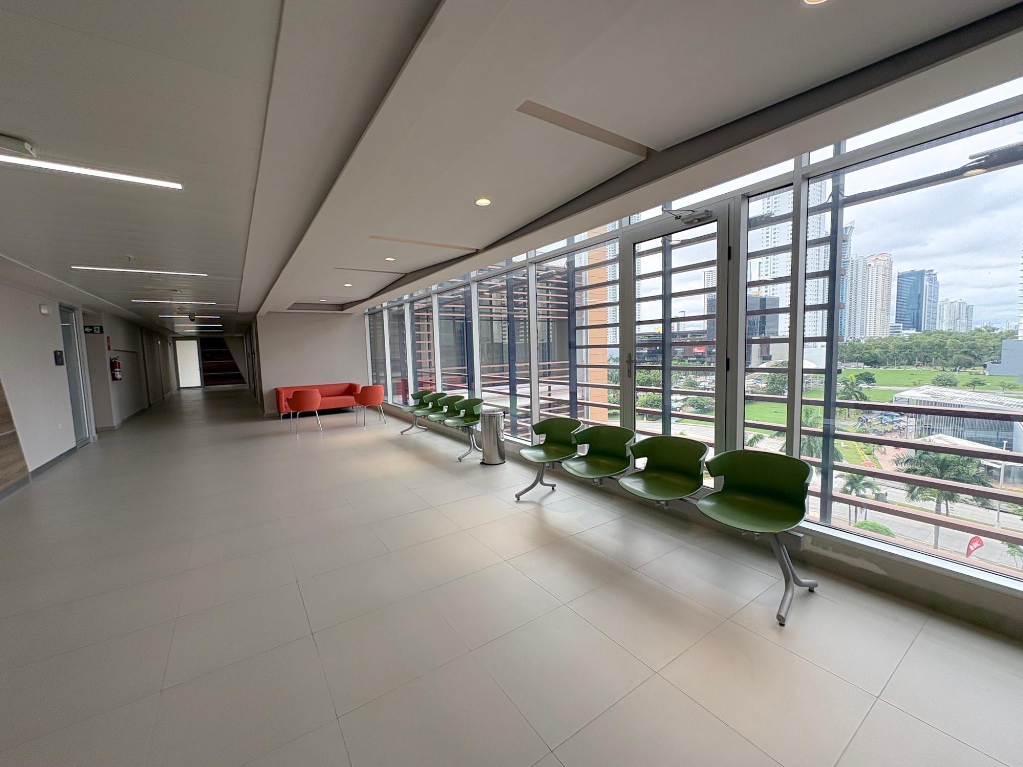 ALQUILER O VENTA DE EXCLUSIVO CONSULTORIO U OFICINA EN TOWN CENTER COSTA DEL ESTE CON ESPECTACULAR VISTA. Si atiendes pacientes o clientes en Costa del Este o Santa María, esta ubicación te posiciona exactamente donde ellos están. El espacio se encuentra dentro del Town Center, uno de los puntos más reconocidos y accesibles de la zona, con abundante estacionamiento y todas las facilidades que ofrece un centro comercial de primer nivel. Ubicado en el piso más alto de la Torre Palmeras del Edificio Town Center, se destaca por sus vistas al Océano Pacífico, a la urbanización Costa del Este y a la icónica fuente central del mall. Los ventanales de piso a techo en ambos frentes llenan el espacio de luz natural y crean un ambiente ideal para consultas, sesiones o reuniones profesionales. Al estar en esquina, cuenta con mayor privacidad y se encuentra muy cerca de los ascensores. Además, dispone de una amplia sala de espera externa, perfecta para recibir a tus pacientes o visitantes con comodidad. Como valor adicional, tendrás acceso a una sala de juntas totalmente equipada y a un lounge moderno para reuniones o trabajo colaborativo. Si buscas un lugar estratégico, funcional y con una presencia impecable, este consultorio es la opción ideal. Contáctame y agenda tu visita