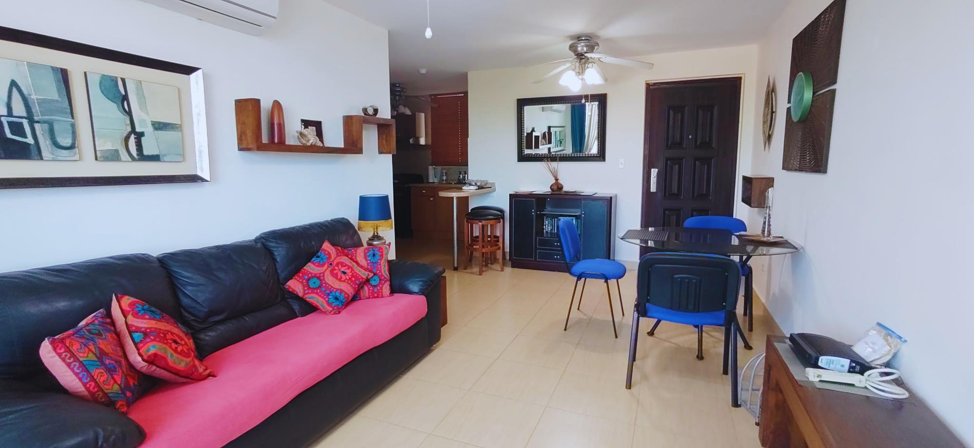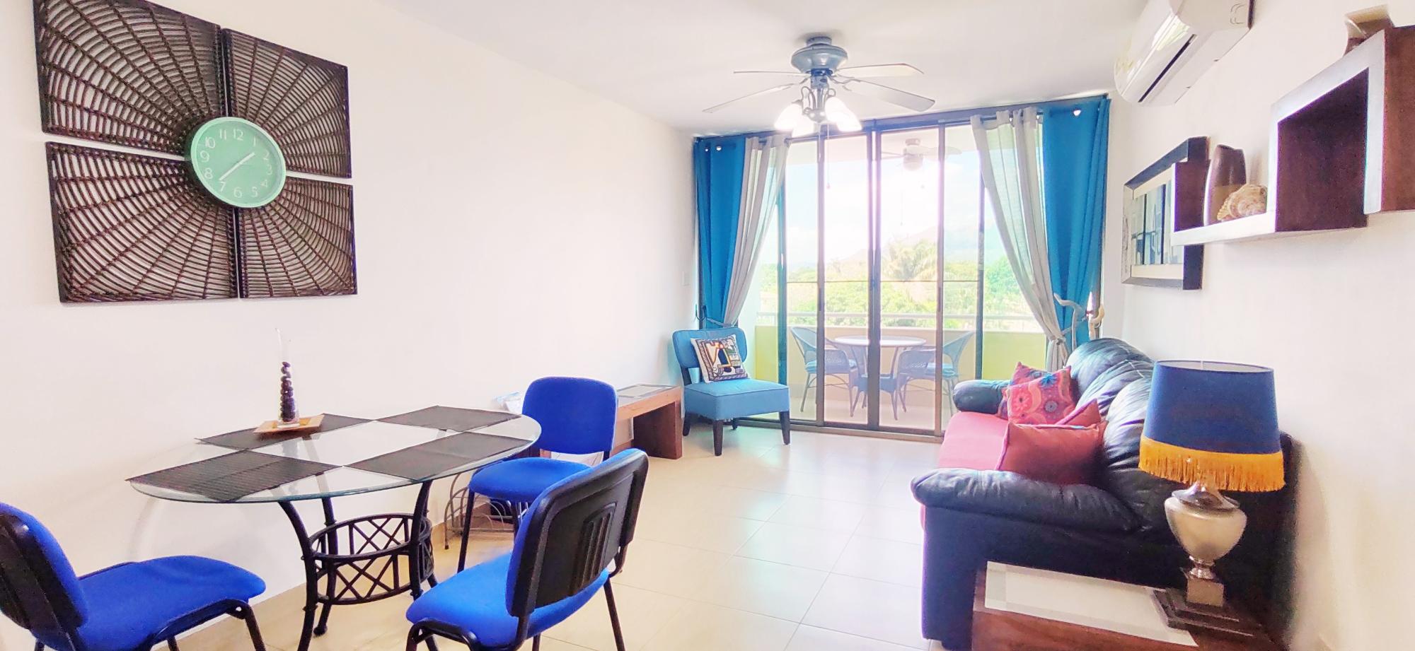 Se ofrece en alquiler un apartamento completamente amoblado y listo para ocupar, ubicado en el exclusivo PH Gorgona Ocean Front, a solo un minuto caminando de la playa. Esta unidad, diseñada para la comodidad y el disfrute del estilo de vida costero, destaca por sus tres amplios balcones privados: uno en cada habitación y uno en la sala, ofreciendo vistas despejadas a la naturaleza y una vista parcial al océano que garantizan ventilación cruzada y luz natural. Características de la Propiedad: Distribución: 2 habitaciones espaciosas, cada una con acceso directo a balcón privado. 1 baño moderno. Sala-comedor integrados con salida al tercer balcón. Mobiliario: El apartamento está totalmente amoblado con un estilo contemporáneo y toques de color caribeños. Cocina: Completa y equipada con sobres de fórmica, estufa con horno de acero inoxidable, refrigeradora de dos puertas, microondas y gabinetes de madera. Lavandería: Área separada con centro de lavado. Vistas: Excelentes vistas a áreas verdes y montañas, con vista parcial al mar desde los balcones. Amenidades del PH Gorgona Ocean Front: Piscina para adultos y niños. Área de BBQ y gazebo. Seguridad 24/7 y conserjería. Acceso rápido y fácil a la playa (1 minuto a pie).