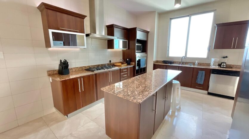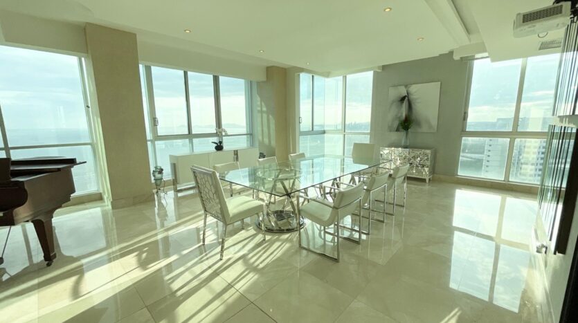 En alquiler espectacular apartamento full amoblado en el exclusivo P.H. Ocean Two, Costa del Este, con 410 m² distribuidos en 4 recámaras, 4.5 baños, amplia sala y comedor, den, desayunador, cocina equipada, lavandería, C/B/S y 3 estacionamientos. Ofrece aire central en las áreas sociales y la recámara principal, además de aires inverter en las secundarias. Este icónico edificio brinda amenidades de primer nivel como piscina, jacuzzi, sauna, gimnasio, cine, canchas deportivas, área de BBQ, salón de fiestas y mucho más, ideales para un estilo de vida de lujo y confort en una ubicación privilegiada de la ciudad.