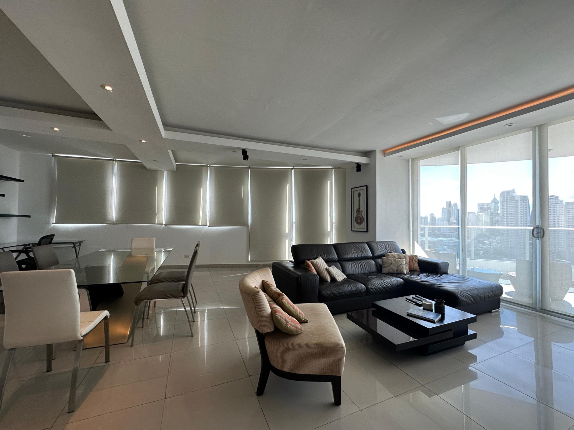 Se vende o alquila con opción a compra apartamento en PH Joy, San Francisco, Panamá. Ubicado en la calle 73 cerca del área bancaria, restaurantes, plazas comerciales, supermercado, farmacias, deli y mucho más, todo a distancia caminando. – Amoblado y completamente Equipado – 214 m2 – 3 recámaras – 2,5 baños – recámara principal con walkincloset y baño privado – baño secundario completo con acceso por ambas recámaras secundarias – hermosa vista a la ciudad – Amplio Balcón – Gran salón comedor con counter – sistema smart para luces, sonido, Aires y TV – Aires split inverter con wifi – lavandería abierta – Cuarto y baño de Empleada – Cortinas blackout – pisos de porcelanato – cocina abierta con linea blanca completa y counter desayunador completamente equipada – 2 estacionamientos techados PH con áreas recreativas que incluyen piscina, gimnasio, áreas de barbacoa, Parque infantil, salón de eventos, todas recientemente remodeladas, Edificio recien pintado como nuevo, seguridad 24/7 Venta 395.000$ Alquiler con opción a compra 2100$