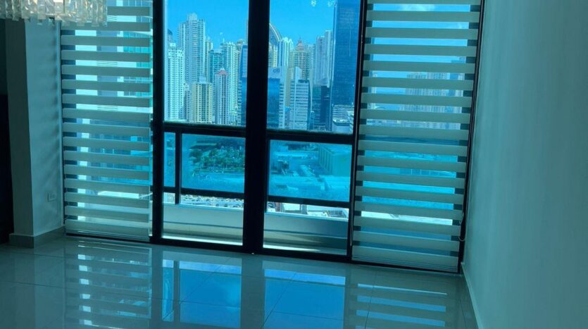 Apartamento de 224 m² en Pacific Bay, San Francisco, piso alto con vista a la ciudad y al mar. Cuenta con 3 recámaras con baño privado, 2 estacionamientos, sala-comedor amplia, cocina cerrada, lavandería y cuarto y baño de servicio. Incluye línea blanca. Edificio con solo 2 apartamentos por piso, área social, piscina, gimnasio y seguridad 24/7. Excelente ubicación cerca de Vía Israel y Corredor Sur.