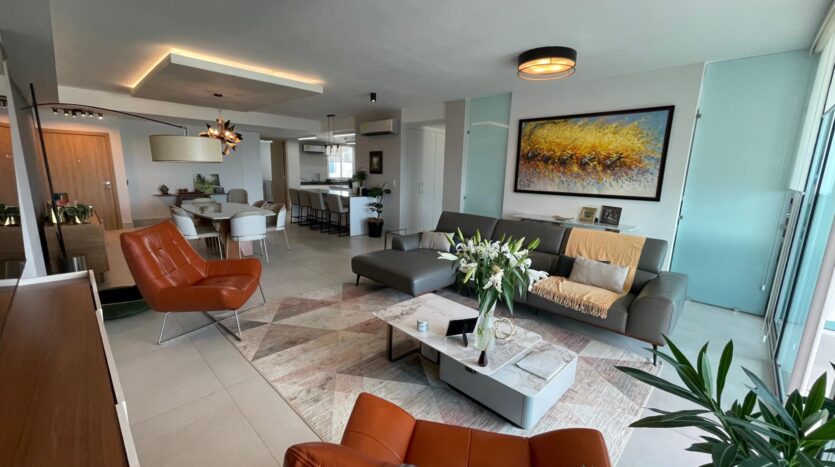 Extraordinario Apartamento Familiar completamente amoblado en Coco del Mar, Ciudad de Panamá  Con 245.7 m² (2,645 pies cuadrados) de espacio bien distribuido, cuenta con 3 recámaras, 3.5 baños y un amplio balcón con espectaculares vistas al mar y a la ciudad.  PH Riviera del Golf es un edificio moderno y de construcción sólida, idealmente ubicado en el corazón de Coco del Mar, muy cerca de restaurantes, centros comerciales, cafeterías y la Cinta Costera.  El área social está completamente equipada y ofrece una hermosa piscina, gimnasio con equipos nuevos, área de juegos infantiles, zona de BBQ y un salón de eventos.