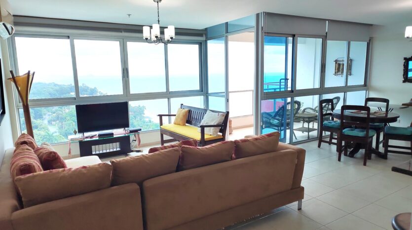 Se alquila amplio y luminoso apartamento de 1 habitación y 2 baños en el reconocido PH Coronado Bay, uno de los edificios más buscados en Coronado por su ubicación frente al mar y sus excelentes amenidades. Con 103.5 m², este hogar ofrece comodidad, espacio y vistas espectaculares. Disfruta hermosas vistas al mar y a las montañas desde la habitación, sala/comedor, cocina y el balcón, lo que permite apreciar los mejores amaneceres y atardeceres desde diferentes espacios del apartamento. El apartamento cuenta con una habitación principal con baño privado, sala/comedor integrada, cocina equipada, lavandería interna y un balcón con una vista excepcional. Características del Apartamento: 103.5 m² 1 habitación 2 baños completos Sala y comedor Cocina equipada Lavandería Balcón con vista al mar y a las montañas Vistas al mar y a las montañas desde: habitación, sala/comedor, cocina y balcón. Amenidades del Edificio: Piscinas frente al mar Gimnasio equipado Salón de eventos Áreas de descanso Acceso directo a la playa Seguridad 24/7 Estacionamiento Lobby y elevadores Ideal para quienes buscan vivir frente al mar con comodidad, privacidad y excelentes áreas sociales en una de las zonas más exclusivas de Coronado.