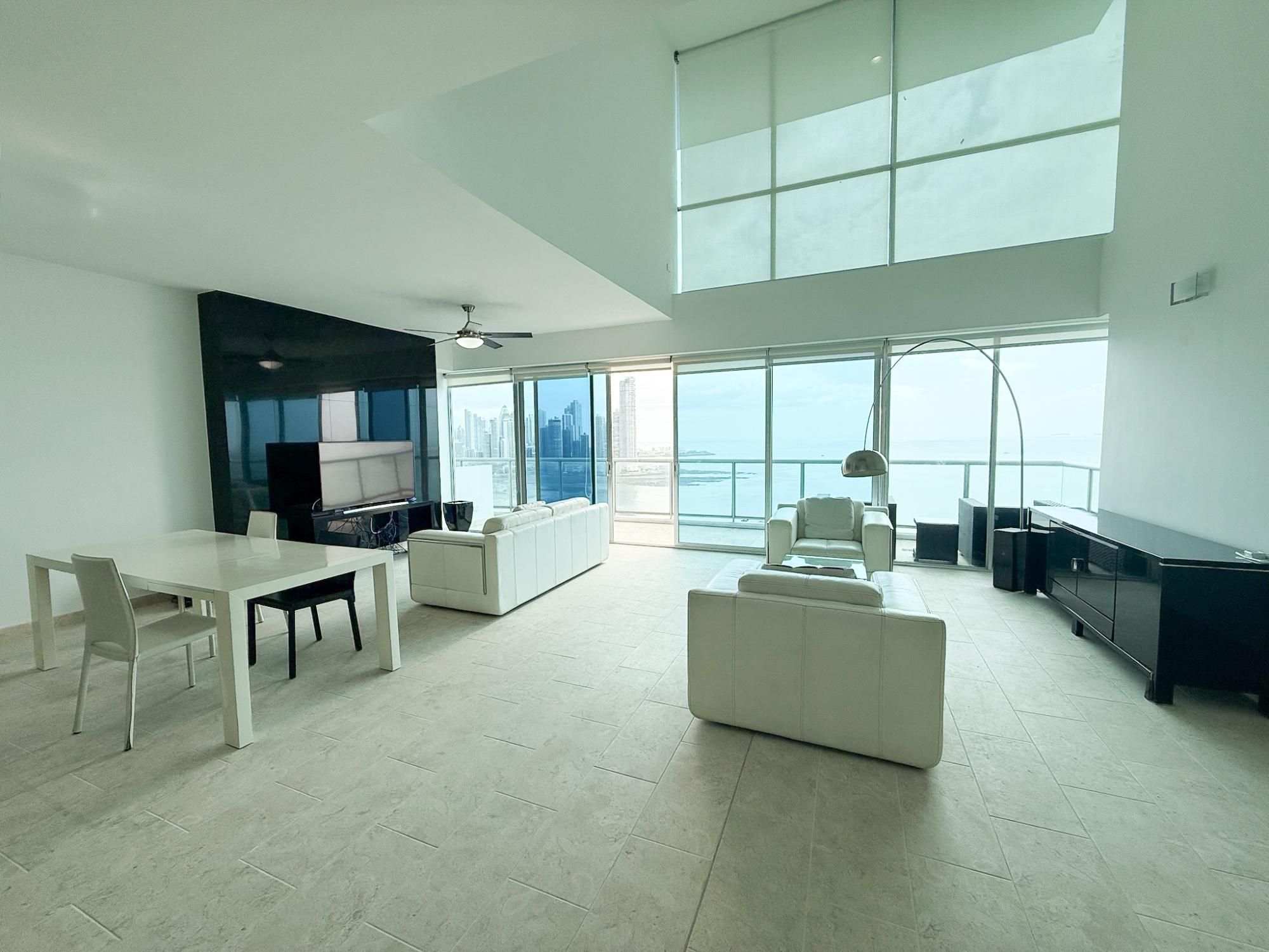 Cuando estás comparando apartamentos en Avenida Balboa, lo que realmente mantiene su valor con el tiempo es simple: distribución, vista y calidad. Este apartamento remodelado en Sky se distribuye en dos niveles, lo que lo hace sentir más como una casa que como un apartamento típico. La sala y el comedor se integran en un espacio abierto y cómodo, con acceso directo a un balcón orientado hacia el Pacífico. Hay suficiente espacio para definir claramente ambas áreas sin que se sienta reducido o incómodo. La cocina se integra de forma natural al área social y, justo al lado, cuenta con un espacio de lavandería práctico con lavadora y secadora. Es compacto, pero está organizado de manera que facilita la vida diaria. En la planta alta se encuentran dos recámaras y dos baños. Ambas recámaras tienen vista al mar, lo cual marca una gran diferencia. En muchas unidades, solo la recámara principal cuenta con vista; aquí, ambas la disfrutan, lo que aumenta el atractivo general. Uno de los baños incluye tina, una característica que algunos propietarios e inquilinos aún valoran mucho. Sky Sky fue terminado en 2009 y es una de las torres residenciales consolidadas en Avenida Balboa. Ofrece una buena combinación de amenidades completas y un ambiente residencial sólido, con varias unidades por piso y administración profesional en sitio. Los residentes tienen acceso a dos piscinas, incluyendo una semiolímpica, gimnasio, jacuzzi, sala de juegos y una piscina en la azotea con vistas abiertas al océano y al skyline. El edificio también ofrece seguridad 24 horas y acceso controlado. Vivir aquí significa estar justo frente a la Cinta Costera, cerca de restaurantes, comercios y el distrito financiero, y a unos 20 minutos del Aeropuerto Internacional de Tocumen por el Corredor Sur.