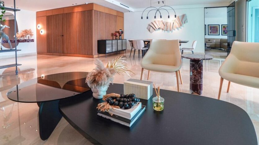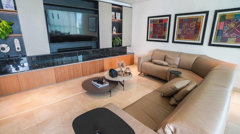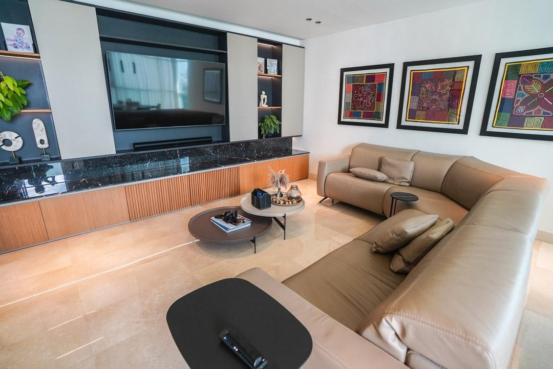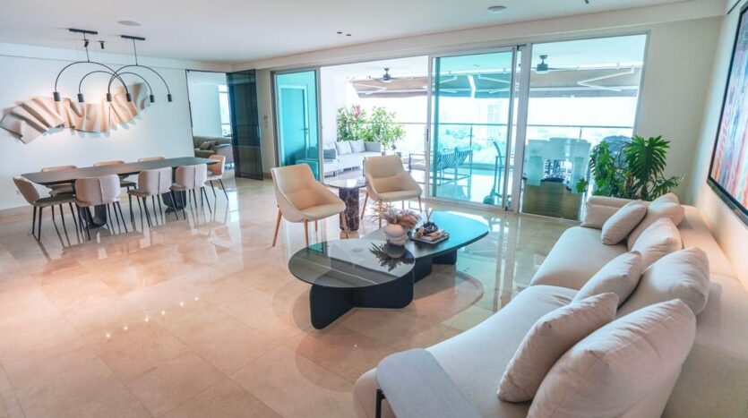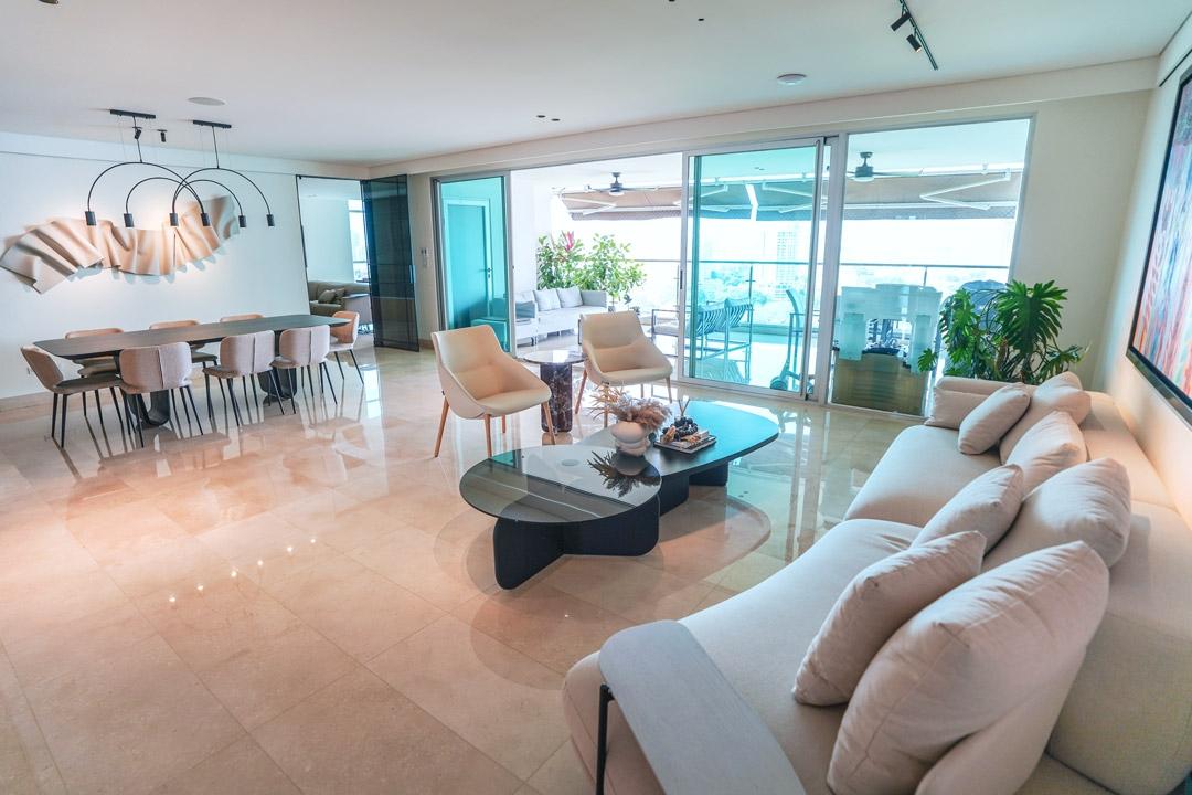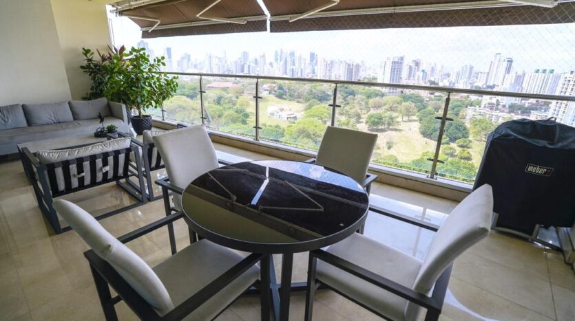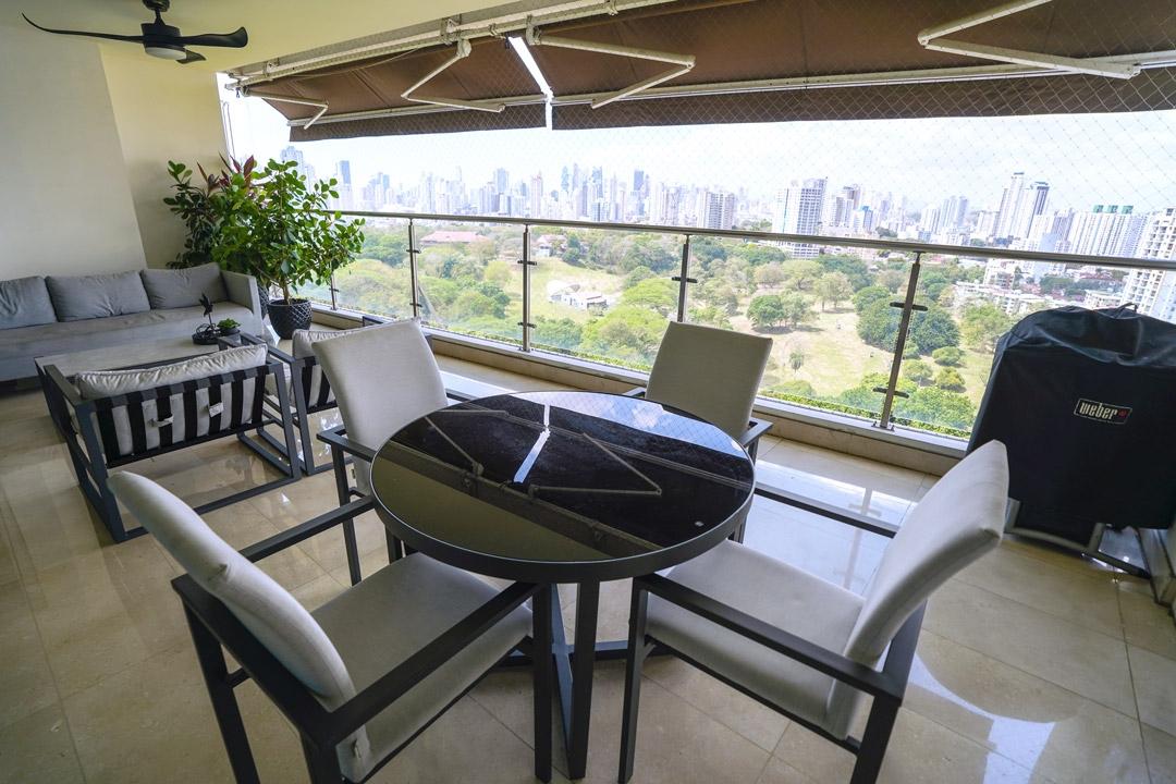 Hermoso apartamento frente al Parque Omar. Esta increíble propiedad cuenta con 4 habitaciones, 4.5 baños, más cuarto y baño de servicio, finos acabados en todos sus espacios, iluminacion completa, cableado completo para cámaras, wifi y bocinas, muebles empotrados en den con sus piedras de mármol, paneles decorativos en sala y comedor, dos (2) aires acondicionados centrales, todas las cortinas, mallas de ventana y toldas de balcón, amplia cocina, ventanas panorámicas y una terraza de ensueño frente a las áreas verdes del Parque. Además tiene acceso directo al Parque, piscina, gimnasio, área de BBQ, área para niños, sala de eventos y seguridad. Sólo dos apartamentos por piso. El apartamento tiene derecho a dos (2) estacionamientos y un (1) deposito.