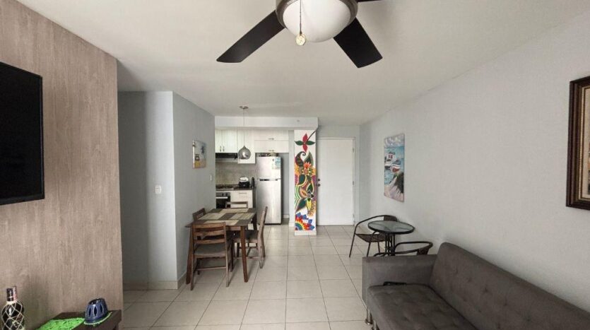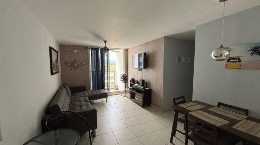 Amplio y cómodo apartamento de 89 m² en PH Torres de Cantabria (Torre 400), ideal para quienes buscan comodidad y seguridad en un entorno familiar. Al ingresar, te recibe una amplia y cómoda sala–comedor con salida a balcón, perfecta para una mejor ventilación y para relajarse. Cuenta con una cocina de concepto abierto, integrada y equipada con gabinetes de almacenamiento, además de lavandería incorporada. Dispone de dos habitaciones, ambas con clósets, y dos baños. Incluye un puesto de estacionamiento. Se vende con muebles y línea blanca. Costo de mantenimiento: $110. Vive en PH Torres de Cantabria, un moderno complejo residencial cerrado que combina seguridad, confort y calidad de vida. Cuenta con garita de seguridad y control de acceso las 24 horas, Casa Club con piscina para adultos y niños, y un área social ideal para disfrutar en familia, con juegos infantiles, cancha multiuso, salón de eventos, entre otras amenidades. PH Torres de Cantabria tiene una ubicación estratégica en Las Acacias, próximo a la Vía Costanera en Versalles y a la Estación del Metro de Pedregal. Cuenta con fácil y rápido acceso al Corredor Sur, farmacias, supermercados, centros comerciales y colegios.