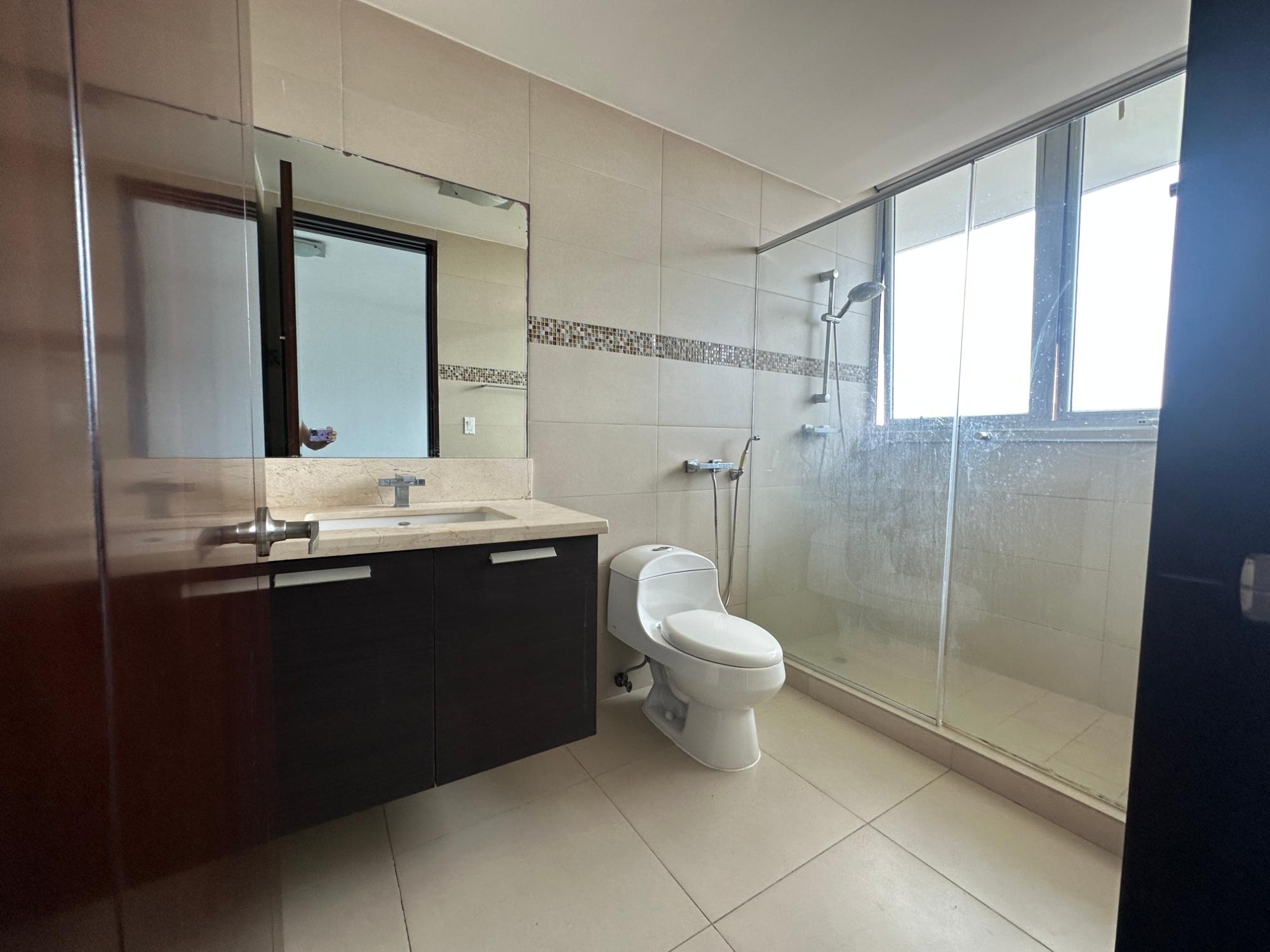 Caracteristicas -115 m2 de construcción -Balcón con Linda vista a la Ciudad -1recámara con baño privado – walkincloset – 1/2 Baño de visita – Amplio Salón comedor -Incluye todas las lámparas, línea blanca, cortinas y aire central. – Cocina integrada, con cómodo mostrador y lavaplatos – Área de Lavandería cerrada – AC/Central – Estufa, Nevera, lavadora, secadora, lavaplatos y calentador de agua -1 estacionamiento techado – Piso Alto – Mantenimiento 200$ – Modernos acabados y Excelente Área Social para niños y adultos Ubicado en PH Oceanaire Punta Pacífica área social con: -salón de eventos, -Parque y salón de niños -Sauna, Cancha de squash, -gimnasio – Piscina -parque de perros Seguridad 24/7 Zona muy céntrica, con plazas, comercios, restaurantes y supermercados muy cerca. Venta 235.000$ Negociables o renta 1300$ cuando salga el inquilino en abril 2026