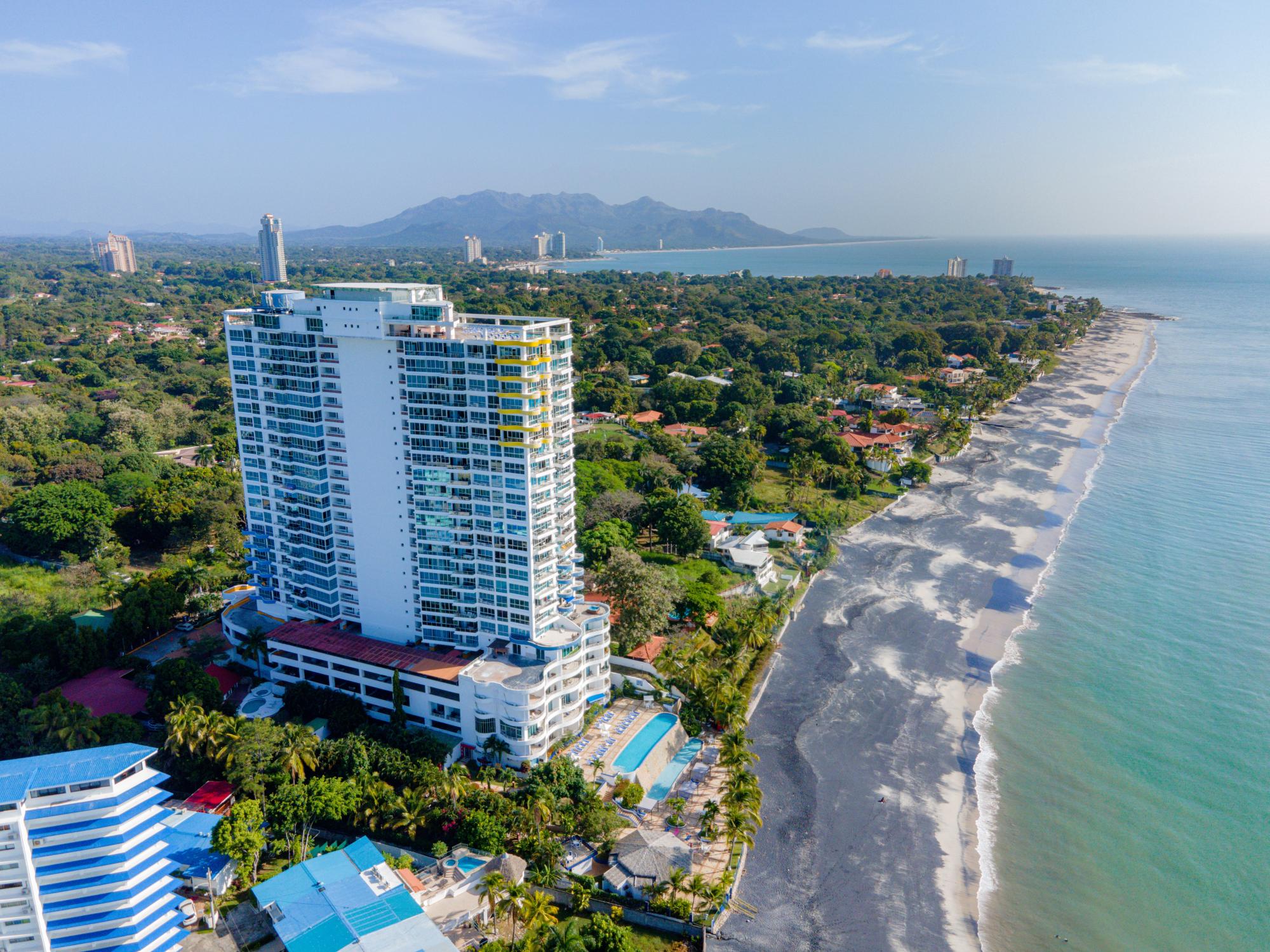 Este condominio frente al mar en Coronado, Chame, ofrece una vida costera directa con vistas al Océano Pacífico y las montañas circundantes. La residencia está amueblada y diseñada para el confort y la conveniencia diaria. Disfrute de las vistas del amanecer sobre la piscina y el Océano Pacífico, con fácil acceso a la playa, la piscina y el área de descanso. Disfrute de un paseo diario por la playa. La zona está en una buena ubicación, a poca distancia a pie de minimercados y restaurantes. Fácil acceso a los principales mercados, tiendas y puestos de frutas y verduras frescas. La distribución incluye una suite con una cama king size. La cocina pequeña está equipada con refrigerador, estufa, microondas. Mesa y sillas pequeñas. Mesa y sillas en el patio con vista a la hermosa vista. La unidad incluye un aire acondicionado split (nuevo), agua caliente a demanda (nueva) y un baño grande con área de lavandería para un uso práctico diario. • Ubicación frente al mar con acceso directo a la playa • Totalmente amueblado con electrodomésticos incluidos • Edificio con ascensores y estacionamiento seguro • Piscina en la azotea y área social Ubicado en una comunidad de playa bien establecida con demanda constante, este condominio es adecuado tanto para uso personal como para potencial de alquiler. Coronado ofrece un entorno costero bien desarrollado con supermercados, restaurantes y servicios esenciales en las cercanías. La zona es conocida por su comunidad dinámica y su fácil acceso desde la Ciudad de Panamá.