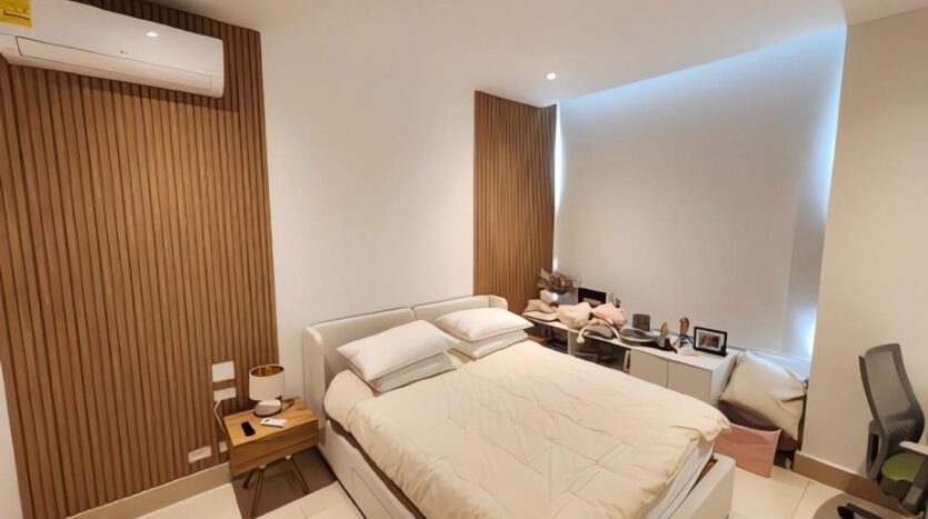 Banco vende apartamento de 358 m² en el exclusivo PH Aria, Costa del Este, distribuido en 4 recámaras (cada una con baño privado, dos de ellas con walk-in closet), 4 baños completos, medio baño de visitas, sala, comedor, sala familiar con balcón, den, desayunador, cocina con sobres de cuarzo, lavandería, cuarto y baño de empleada. Incluye 3 estacionamientos privados y un depósito. mas linea blanca y aires acondicionados El apartamento cuenta con acabados de lujo como pisos de mármol y porcelanato, baños con sobres de mármol y tina jacuzzi en el principal. El edificio ofrece completas áreas sociales con piscina, gimnasio, salón de juegos, cancha de squash, salón de fiestas, baño turco, seguridad 24/7, planta eléctrica y estacionamientos de visitas. Precio de venta: B/.950,000.00. Para más información contáctanos