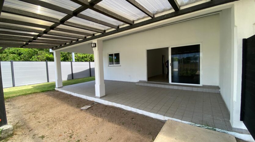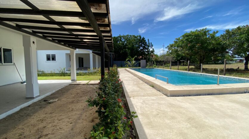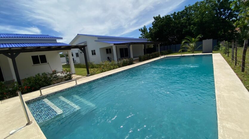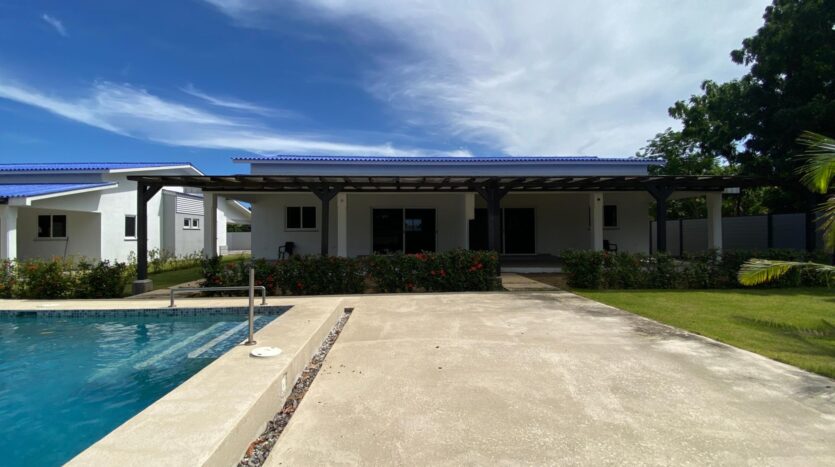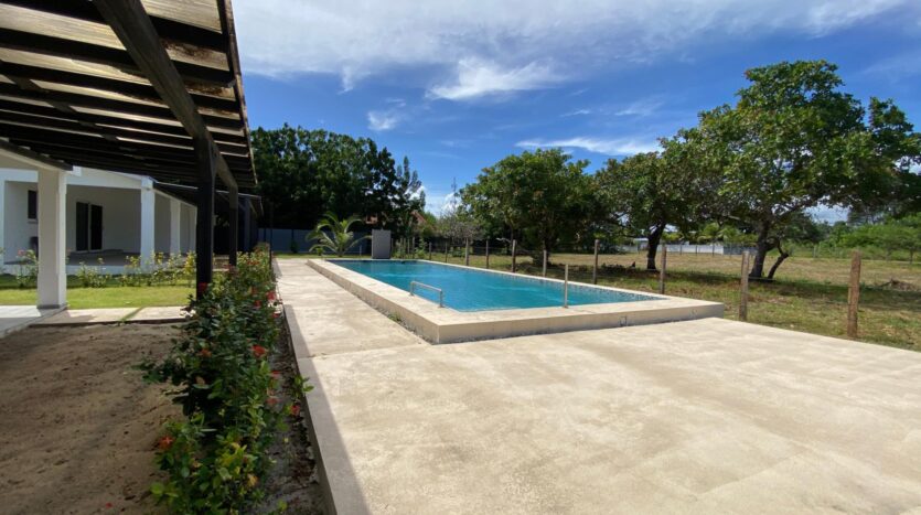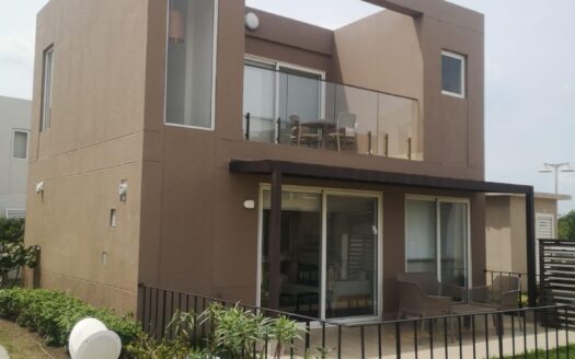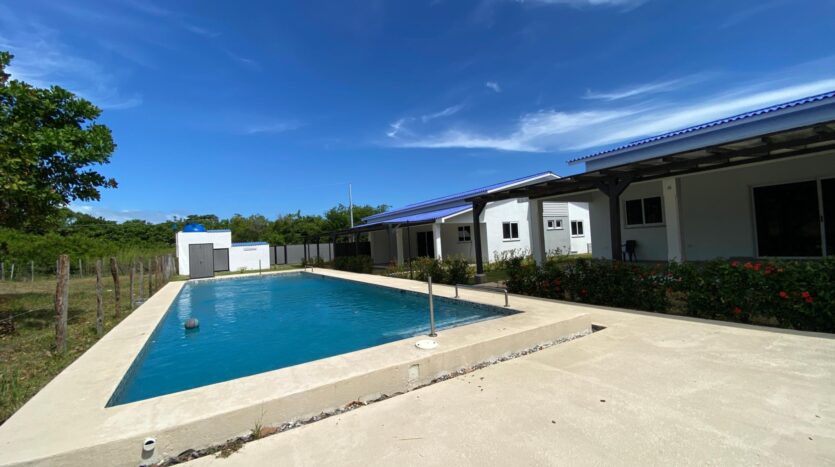 Esta casa de 2 dormitorios y 2 baños se encuentra en Punta Chame, Panamá Oeste, una península conocida por su largo tramo de playa, costa abierta y fácil acceso por carretera desde la Ciudad de Panamá y pueblos cercanos como Chame y Coronado. La propiedad tiene aproximadamente 189 m² de construcción y forma parte de un pequeño desarrollo con piscina compartida y áreas verdes. Características de la cocina y el interior La cocina está equipada con gabinetes, una estufa empotrada, horno y espacio de almacenamiento. Los dormitorios incluyen armarios empotrados y los baños tienen acabados de cerámica estándar. Los materiales utilizados en toda la casa son adecuados para las condiciones costeras, priorizando la durabilidad y el fácil mantenimiento. Áreas al aire libre y servicios compartidos El desarrollo ofrece una piscina compartida ubicada entre las casas, con senderos pavimentados y áreas plantadas. La propiedad está cercada, lo que define cada lote y lo separa del terreno abierto adyacente. La terraza ofrece un área al aire libre que se puede usar durante todo el año, adecuada para comer, sentarse o instalar una pequeña parrilla. El espacio del jardín es plano y manejable. Cerca de la playa. Una de las principales características de esta casa es su ubicación a pocos pasos de la playa. Los residentes pueden caminar directamente hasta la orilla, donde el terreno se abre a una amplia playa de arena típica de Punta Chame. La playa se utiliza para actividades como caminar, nadar y practicar deportes acuáticos, según la temporada.