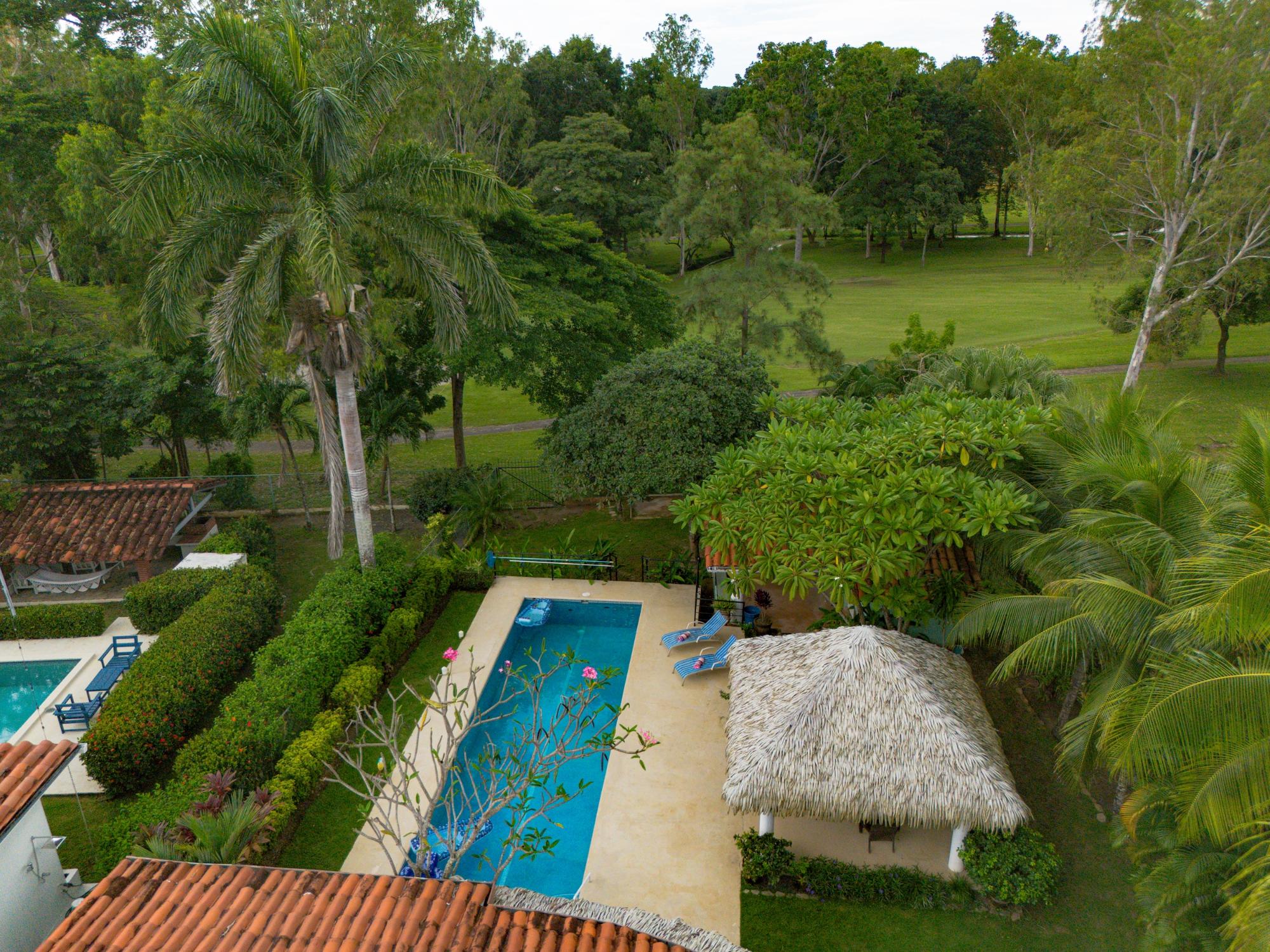 Bienvenido a la casa de sus sueños, ubicada en el prestigioso Coronado Golf and Country Club. Esta impresionante propiedad se asienta sobre un generoso terreno de 1,000 m² con una espaciosa construcción de 220 m². Disfrute de las serenas vistas, ya que la casa colinda con el green del hoyo 14 del campo de golf. Con tres dormitorios elegantemente decorados y un altillo, esta residencia es perfecta para familias o para quienes disfrutan de recibir invitados. La casa incluye una habitación de servicio y 3.5 baños bien diseñados, lo que garantiza comodidad y conveniencia para todos. La cocina y los baños fueron remodelados en 2023. Al salir, descubrirá un amplio patio cubierto, ideal para comer al aire libre y relajarse, una zona de barbacoa, una encantadora piscina y un acogedor bohío junto a ella. El paisajismo maduro añade un toque de elegancia y privacidad, mientras que la propiedad cercada y con portón ofrece seguridad y tranquilidad. Se incluye un depósito para almacenamiento y otro para la piscina. Además, cuenta con pozo de agua y aire acondicionado tipo split para su comodidad. Esta excepcional residencia en Coronado representa una oportunidad única para disfrutar de un estilo de vida de lujo en un entorno impresionante. ¡No pierda la oportunidad de hacer suya esta joya!