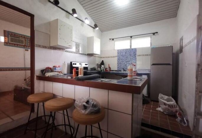 Cuenta con pisos de baldosas, cielo raso metálico y techo de zinc sobre estructura metálica. casa principal cuenta con vestíbulo, cocina completa, 4 recámaras (1 con aire acondicionado de ventana y todas con abanico), piso de baldosa y ventanas de persianas con celosias y marco de aluminio, verjas de hierro, 2 baños completos con azulejos (también en cocina). puerta de hierro en entrada y de madera en recámaras. terraza con piso de arcilla y área de BBQ. hacia atrás pasando área de BBQ se encuentra un efficiency con recámara, cocina, fregador; azulejos en cocina y baño. piso de arcilla. techo de zinc. ventanas de persianas con celosias y verjas por fuera. depósitos en el exterior. el agua es de pozo. ambas fueron remodeladas en el año 2000. casa principal, cerrada áreas para 4 recámaras, añadiendo un baño completo, pisos, techos, cerámicas, casa de visistas; techo, cerámicas, cocina, despensa y depósitos. la casa tiene 99.99 m2 de construcción. venta $110 por m2.