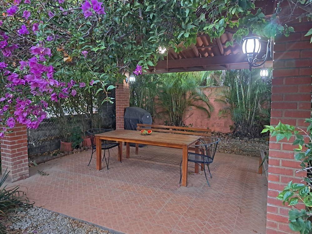 La casa incluye lo siguiente: ●3 amplios dormitorios ●Baño privado en la recamara principal ●Todos los dormitorios tienen unidades de aire acondicionado ●Medio baño adicional cerca de la sala y cocina ●Aire acondicionado en la sala de estar ●Cocina abierta con electrodomésticos, estufa y horno a gas, microondas y más… ●Barra desayunadora con taburetes ●Sala comedor amplia con grandes ventanas ●Sofás, sillones y mesa en la sala ●Mesa de comedor con 6 plazas ●Muebles de patio en la terraza y debajo del bohio ●Calentador de agua automático a gas ●Dos espacios de estacionamiento seguros exclusivos en la puerta de su casa