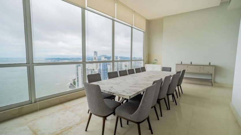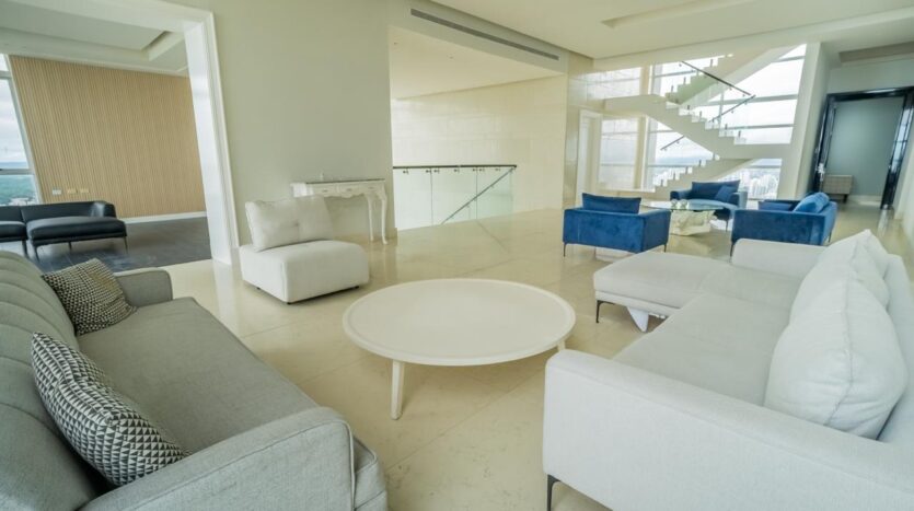 Acerca del Apartamento: Este extraordinario ático de cuatro niveles redefine la vida de lujo, con una impresionante superficie de 1.150 metros cuadrados de exquisito diseño y atención al detalle. Cada nivel revela una atmósfera de grandeza, combinando espacios abiertos, techos altos e impresionantes vistas panorámicas. Nivel 1: Refugio Privado. Con techos de 3,75 metros de altura, esta planta ofrece 4 amplias habitaciones, cada una con su propio baño privado y armarios de diseño italiano. Una lavandería totalmente equipada y una sala de control técnico brindan una comodidad excepcional. El ascensor de servicio se abre directamente a este nivel a través de una puerta multipuerta, garantizando total privacidad. Una amplia sala de estar completa este espacio, ideal para relajarse o recibir invitados. Nivel 2: Grandes Espacios de Vida. Con 4,5 metros de altura, este nivel le da la bienvenida a través de un vestíbulo privado con tres ascensores. La espaciosa cocina moderna está equipada con electrodomésticos VIKING —incluyendo refrigerador, máquina de hielo, estufa, horno y microondas— diseñados para los chefs más exigentes. El comedor tiene capacidad para 14 comensales y cuenta con un área privada para desayunar. Un sofisticado estudio con pisos de madera noble, una amplia sala de estar y ventanales de piso a techo ofrece impresionantes vistas de la ciudad, combinando elegancia y confort. Nivel 3 – Exclusivo Santuario en la Azotea: Un oasis inigualable en la azotea, diseñado para el entretenimiento y la relajación. Con área de barbacoa con conexión de gas, sistema de sonido integrado, baño privado y control inteligente de iluminación, esta azotea ofrece vistas panorámicas despejadas de los lugares más emblemáticos de la Ciudad de Panamá: Cerro Ancón, el Puente de las Américas, el Puente del Centenario, la Calzada de Amador, el Casco Antiguo y la Cinta Costera.