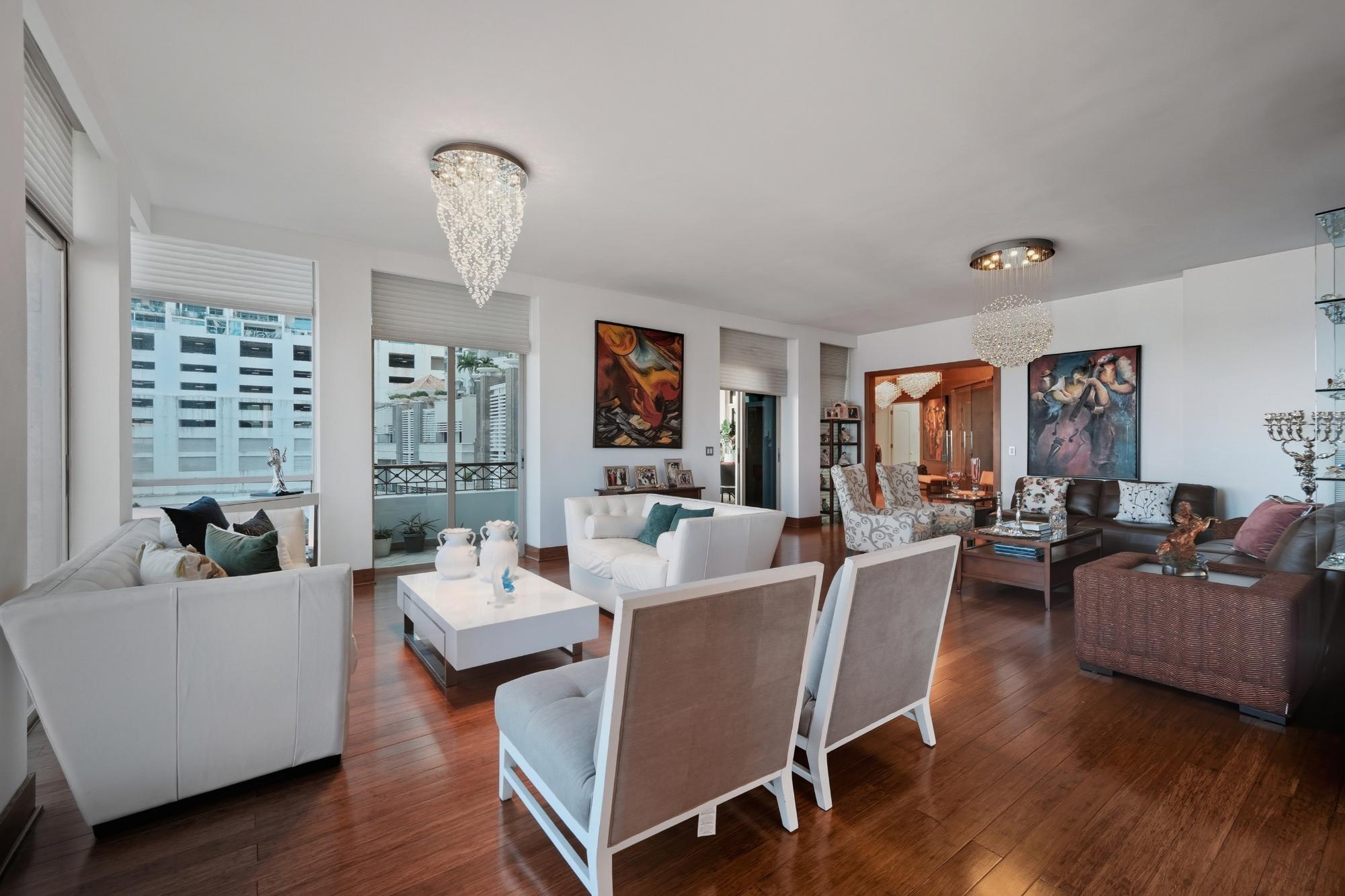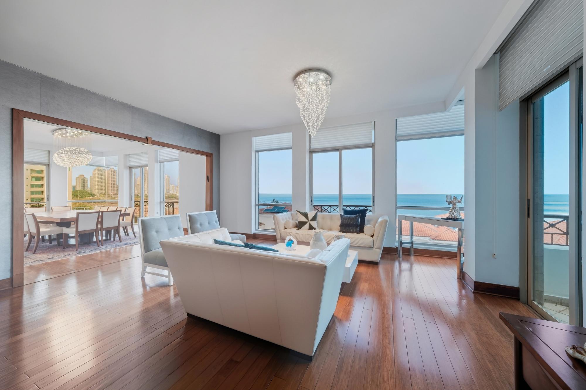 Vida palaciega frente al mar en Punta Pacífica. Experimente una escala y sofisticación extraordinarias en esta enorme residencia de 587 m². Ubicada en el corazón de Punta Pacífica, esta casa completamente amueblada ofrece una combinación única de diseño moderno y expansivo con impresionantes vistas al océano Pacífico. Con solo un apartamento por piso y solo 6 apartamentos en total en todo el edificio, esta propiedad garantiza privacidad y exclusividad excepcionales. La residencia. Diseñada para quienes exigen espacio y elegancia, este santuario lleno de luz presenta una distribución que equilibra grandes áreas sociales con total privacidad: 4 amplias habitaciones: cada una un refugio privado con su propio baño. Estudio versátil: ideal para una sofisticada oficina en casa o cine privado. Sala y comedor: un espacio palaciego de concepto abierto perfecto para el entretenimiento, enmarcado por vistas al océano de piso a techo. Cocina moderna: un espacio culinario elegante y totalmente equipado con acabados de primera calidad. Almacenamiento y estacionamiento: incluye un depósito y 3 espacios de estacionamiento privados. Esta propiedad se entrega completamente amueblada y lista para mudarse, con seguridad las 24 horas para su total tranquilidad. Ubicación: Punta Pacífica. Disfrute del prestigio de vivir en el sector residencial más exclusivo de la Ciudad de Panamá. Ganada al mar y ubicada a solo 15 minutos del aeropuerto, Punta Pacífica ofrece un estilo de vida de primera clase. Accesibilidad: A pasos del centro comercial Multiplaza Pacific, tiendas de lujo y escuelas privadas de élite. Salud: Sede del reconocido Hospital Punta Pacífica, el único centro en Panamá afiliado a Johns Hopkins Medicine. Conectividad: Acceso inmediato al Corredor Sur y a los principales.