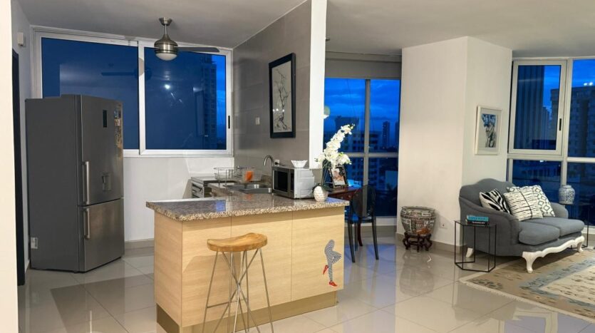 ¡Oportunidad única en San Francisco! Se vende moderno apartamento totalmente amoblado de 115 m², con 1 recámara, 1.5 baños, sala, desayunador y lavandería, equipado con línea blanca, lámparas, cortinas y aires acondicionados tipo split. Disfrute de una excelente vista a la ciudad y de amenidades como área social, piscina, salón de fiestas, gimnasio y estacionamientos de visitas. El edificio ofrece además elevadores, seguridad 24/7, tanque de reserva de agua, acceso para sillas de ruedas y 1 estacionamiento privado. Ubicado en el corazón de San Francisco, con acceso rápido a comercios, restaurantes, hospitales y principales vías de la ciudad.