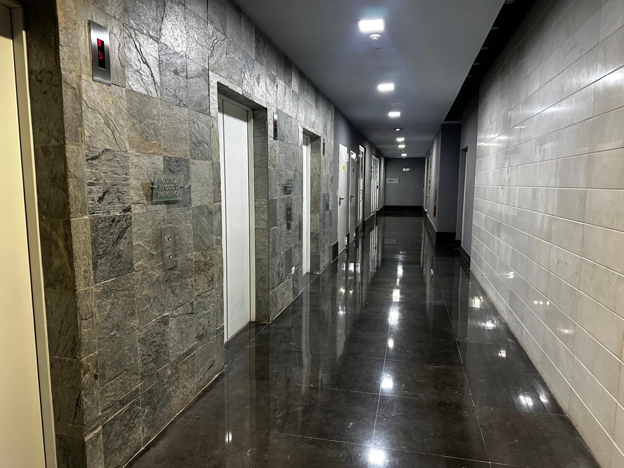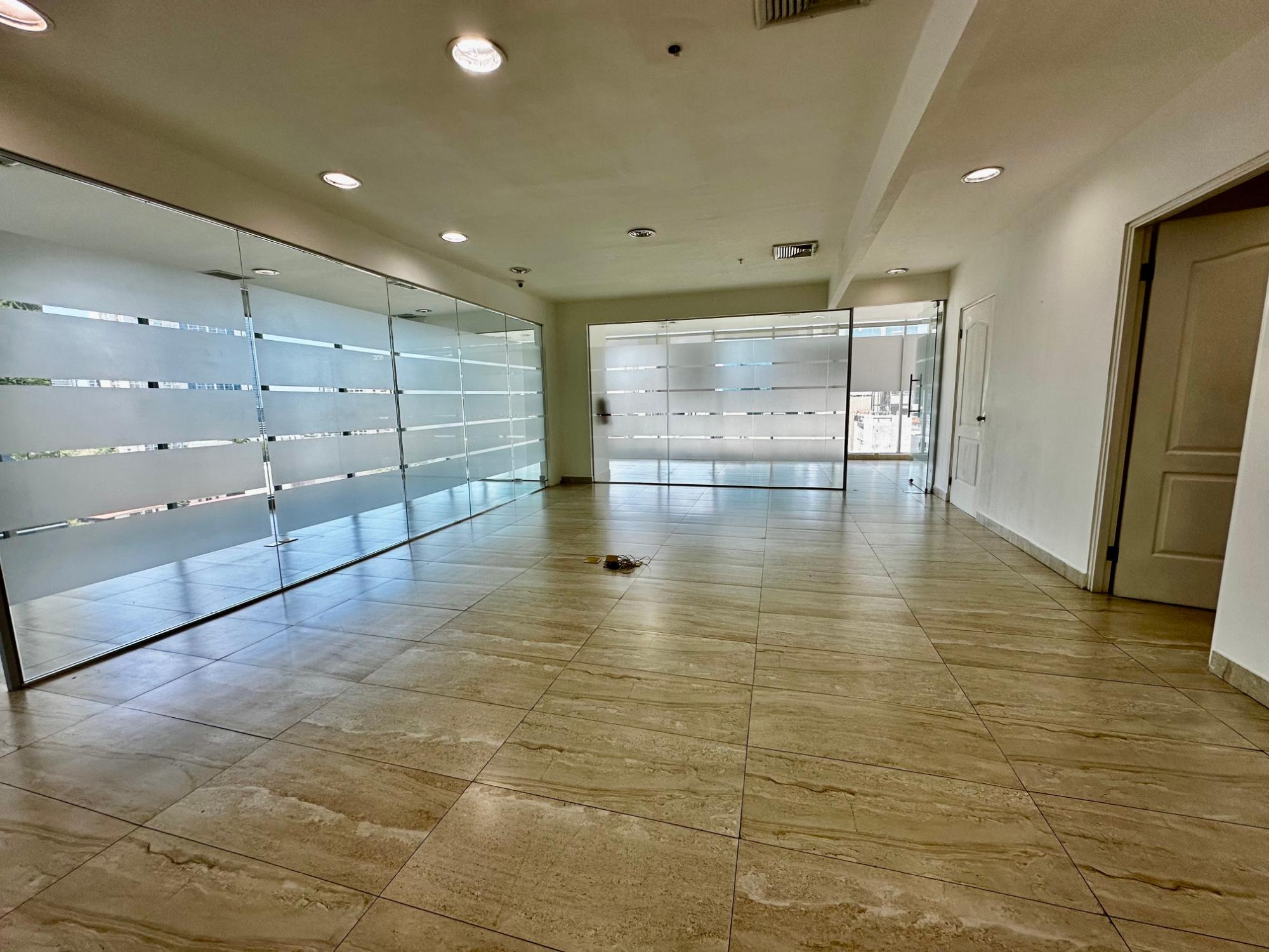 Dos oficinas contiguas, en esquina, tienen 419 m². Con acabados: lámparas, pisos de porcel ...