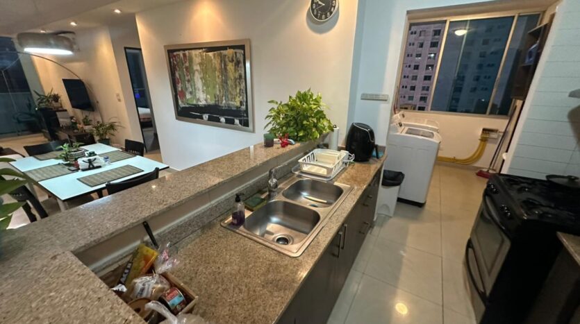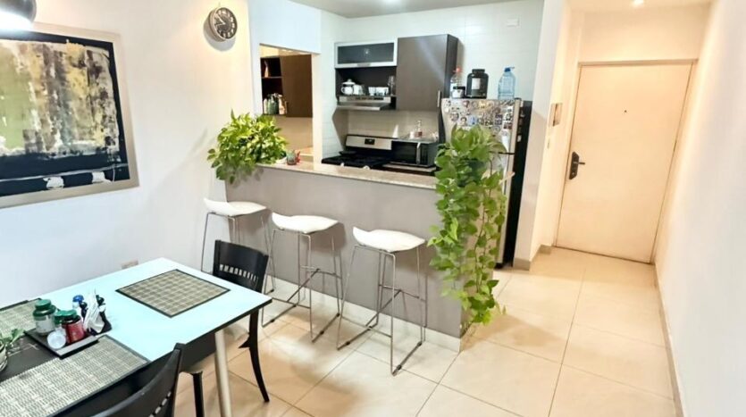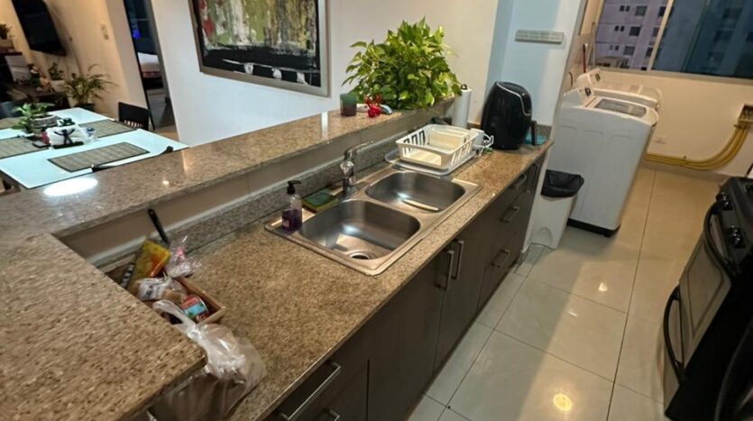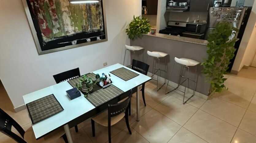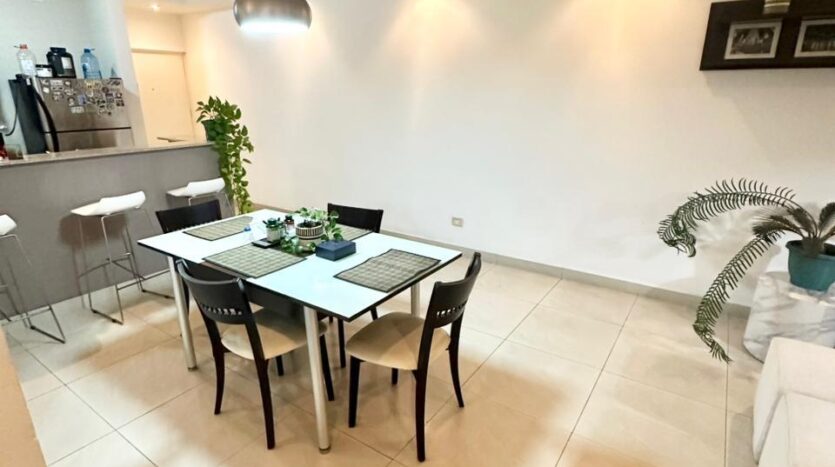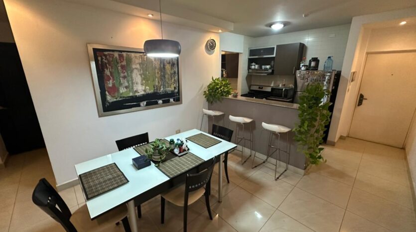 Descubre este cómodo y elegante apartamento ubicado en PH Pacific Sky, ideal para quienes buscan vivir en una zona céntrica con todas las comodidades a su alcance. La propiedad cuenta con 109.92 m² muy bien distribuidos, ofreciendo espacios funcionales y confortables. Dispone de 2 amplias recámaras, 2 baños completos, y se entrega totalmente amoblado y con línea blanca, listo para mudarse. Además, incluye 1 estacionamiento ubicado en el nivel E2. El apartamento ofrece una distribución que permite disfrutar de una agradable área de sala y comedor, con buena iluminación natural, así como una cocina equipada que brinda practicidad para el día a día. Área social del edificio PH Pacific Sky cuenta con una completa área social diseñada para el disfrute de sus residentes, que incluye piscina, gimnasio equipado, salón de eventos, terraza y áreas para relajarse, además de seguridad 24/7 y lobby. Ubicación y alrededores El edificio se encuentra en una zona estratégica de la ciudad, con fácil acceso a importantes vías, supermercados, restaurantes, centros comerciales, bancos y servicios. Su ubicación permite disfrutar de una vida urbana cómoda, cerca de todo lo necesario para el día a día. Este apartamento es una excelente opción tanto para vivir como para invertir en una propiedad con gran potencial de valorización. Precio de venta: $214,500