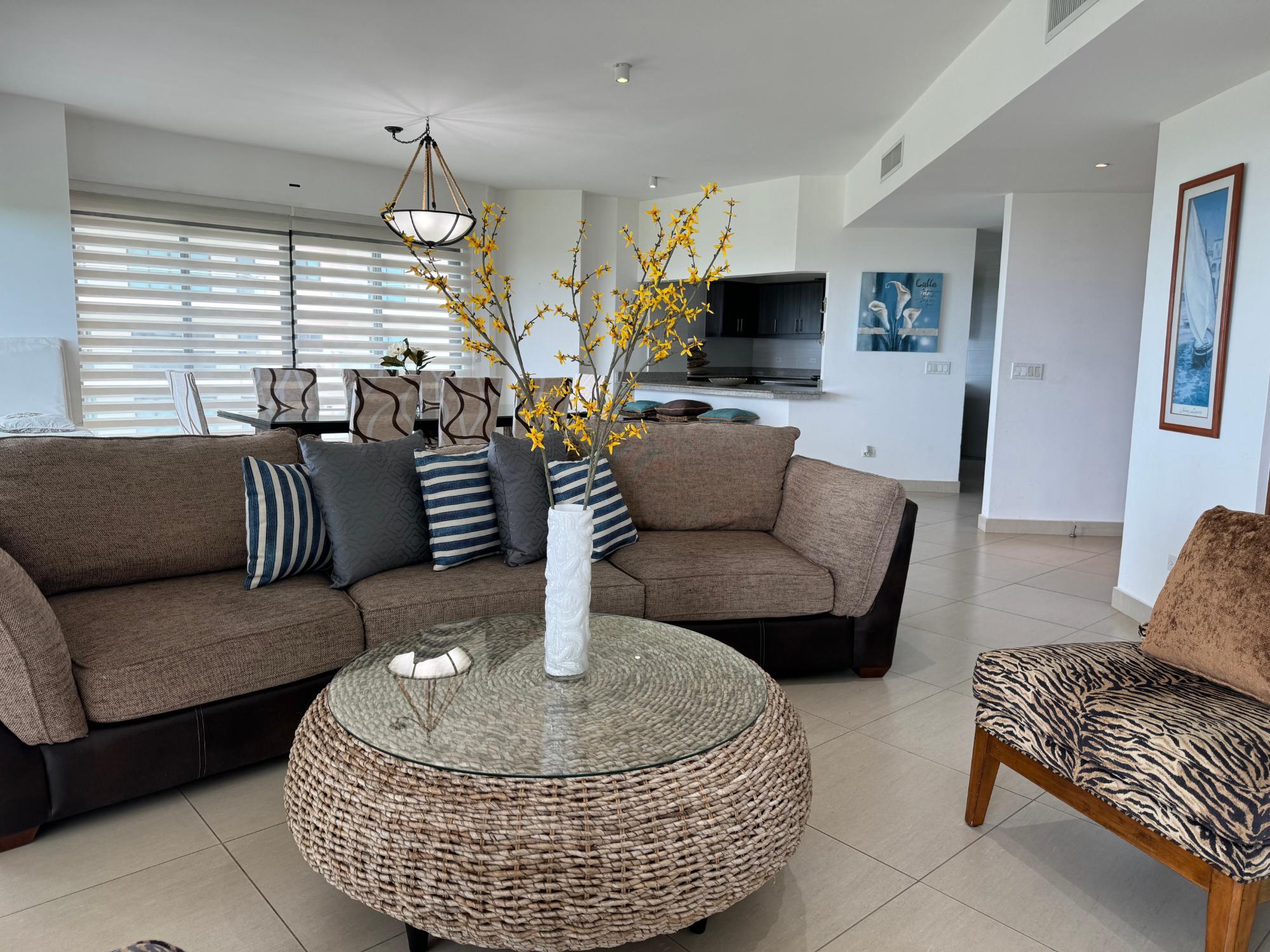 ¡Descubre el paraíso en Vista Mar, donde el lujo y la comodidad se unen frente al Pacífico! Bienvenido a Vista Mar, uno de los complejos residenciales más exclusivos y completos de la costa pacífica de Panamá. Este espectacular apartamento ofrece una experiencia de vida incomparable, combinando privacidad, elegancia y acceso a amenidades de clase mundial en un solo lugar. Ubicado en un entorno privilegiado, esta propiedad lo tiene todo: playa privada, marina, campo de golf, seguridad 24/7, y vistas impresionantes que abarcan las montañas, el océano y los verdes fairways del campo de golf. Un verdadero refugio diseñado para quienes buscan calidad de vida, exclusividad y un estilo de vida tipo resort. Con más de 300 m² de construcción, este apartamento destaca por su amplitud, diseño sofisticado y acabados de alto nivel. Su gran balcón panorámico de aproximadamente 190 grados le permitirá disfrutar de amaneceres, atardeceres y brisas marinas mientras contempla uno de los paisajes más impresionantes del país. La propiedad cuenta con una cocina moderna de concepto abierto, equipada con tecnología y electrodomésticos de última generación, ideal tanto para la vida diaria como para recibir invitados con estilo. Las habitaciones son amplias, cómodas y cada una dispone de su baño privado, ofreciendo máxima privacidad. La recámara principal es un verdadero santuario, con una elegante bañera en suite y vistas incomparables que transforman cada despertar en una experiencia única. Además, el apartamento incluye: Cuarto y baño de servicio Área de lavandería completa Espacios sociales generosos y perfectamente iluminados Este impresionante hogar se vende completamente amoblado, listo para mudarse y comenzar a disfrutar inmediatamente de todo lo que Vista Mar tiene para ofrecer: golf, navegación, playa, tranquilidad y un estilo de vida exclusivo frente al mar. ✨ Una oportunidad única para vivir o invertir en uno de los destinos más codiciados del Pacífico panameño. HOA: USD $451 mensuales Contáctenos hoy mismo para más información o para agendar una visita privada.