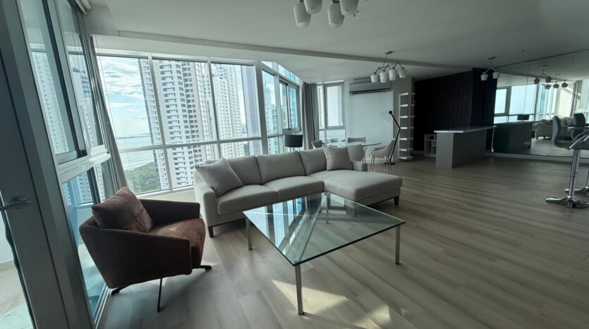 Ph Riverside, 106.7 metros, 1 recámara, 2 baños completos, cocina abierta, bar, balcón, lavandería, 1 estacionamiento. Se alquila amoblado, listo para vivir.