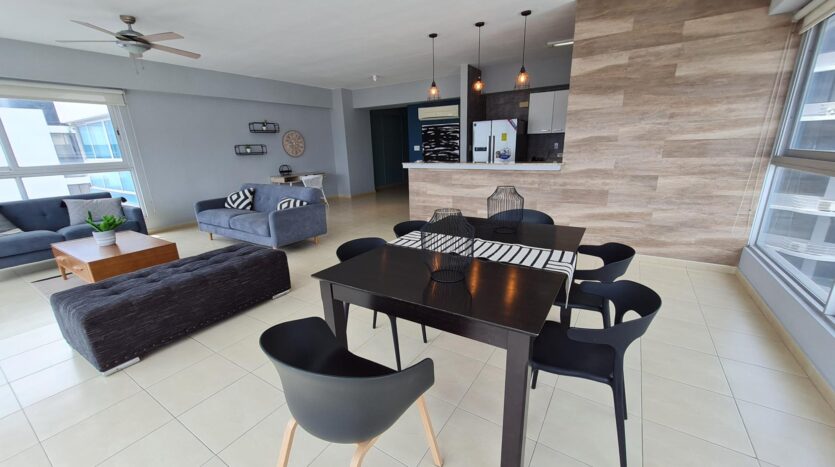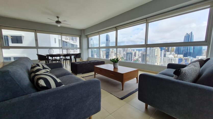 SE VENDE bellisimomo apartamento en Avenida Balboa, con hermosa vista a la ciudad y la mejor ubicación. Es moderno y ha sido remodelado por decorador con la mejor calidad. La unidad cuenta con: 138 m2, el modelo más amplio de Grandbay Tower 1 recámara con walk in closet 1.5 baños amplia área de sala comedor, con ventanales de piso a techo y espectacular vista de la ciudad de Panamá moderna cocina abierta 1 estacionamiento A pasos de centros comerciales, farmacias, lavanderías, bancos, frente a la cinta costera y demás amenidades. El edificio cuenta con completa área social que incluye amplio gimnasio, piscina (en la terraza del edificio, con vista majestuosa de la bahía), sala de entretenimiento y salón de fiestas; además wi-fi en las áreas comunes