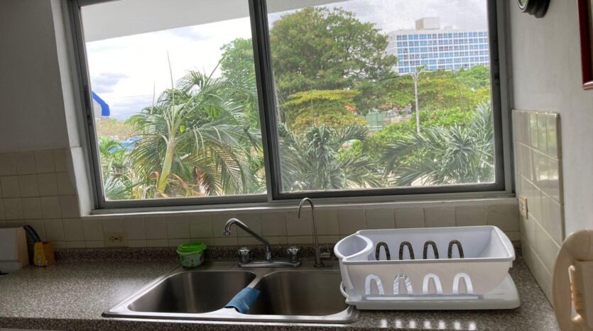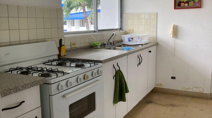 Es un apartamento amoblado de tres recamaras, sala comedor, cocina, 2 baños para las recamaras y cuarto de empleada con su baño.