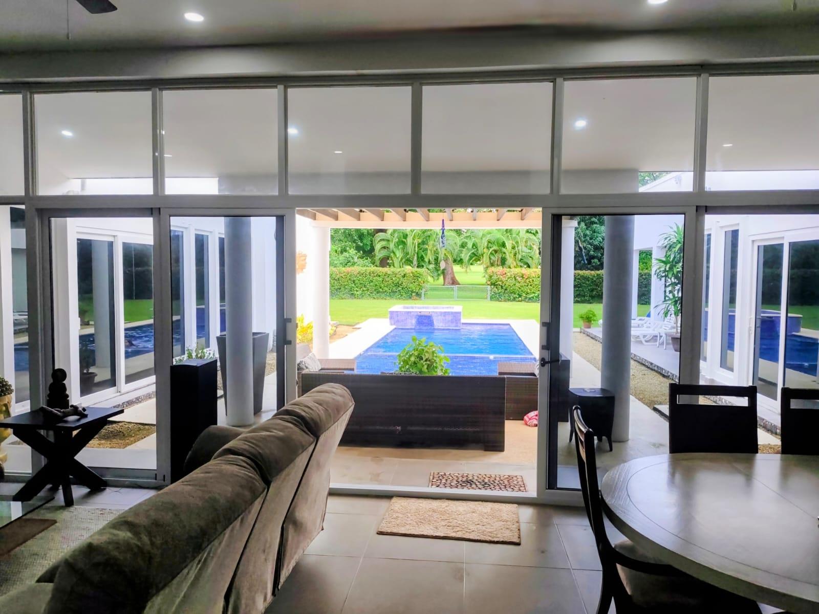 Hermosa residencia localizado en el Club de Golf de Coronado, con 1250mts2 de terreno con la posibilidad de comprar otro lote de 1250mts2 colindante: Consta de 4 Recamaras la principal con walking closet y baño, 3 recamaras secundarias cada una su baño privado y con walkin closet, Cto y baño de empleada. 2 depositos una adento y otra afuera. Lavanderia cerrada, deposito interno y otro externo muchas areas abiertas y una Terraza exterior y area de BBQ. Planta Electrica. Amplios espacios. sala comedor interna, con la cocina recien Remodelada, Lavanderia. Expectacular Terraza exterior con comedor y sala exterior. Area de BBQ, Piscina con calentador de agua y jacuzzi con aguas turbulentas, area para niños, arboles y ornamentals para el disfrute de las areas junto a su familia. Hermosos tragaluces. 3 estacionamientos techados y varios espacios adicionales Puertas de madera de seguridad. Los amplios espacios dan claridad y frescor en la residencia. Aires acondicionados y abanicos de techo. Posibilidad de acceso al Club de golf, club de playa e instalaciones del Club Coronado y posibilidad de compra de accion club de Golf, para los amantes de este deporte. Esta es una residencia perfecta para una familia grande, hay mucho verdor, todo bien cuidadito y permite disfrutar sin el bullicio de otras areas, privada, cercada y con todas las facilidades dentro de ella. El acceso a la playa es a 10 minutos en auto. El acceso al Club de Golf esta a 5 minutos caminando. Accesibilidad a grandes supermercados, restaurantes, tiendas y servicios publicos y privados