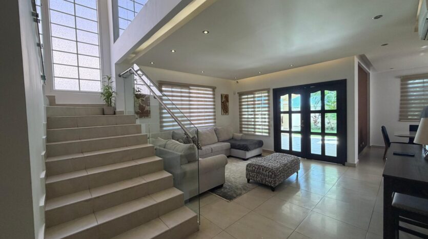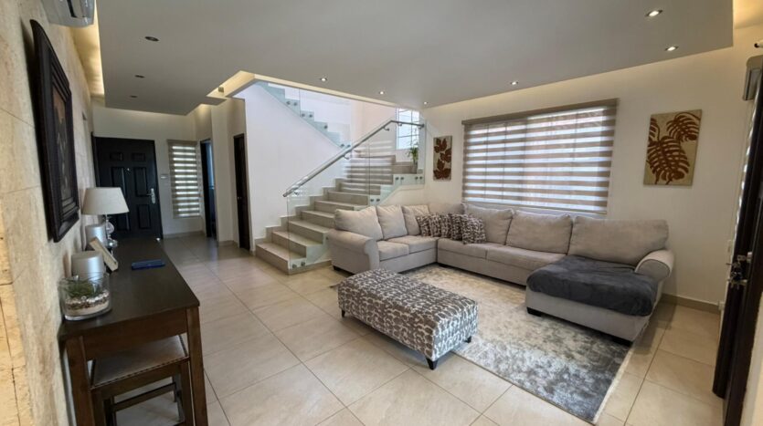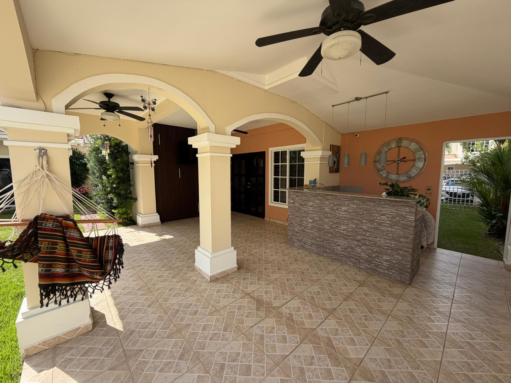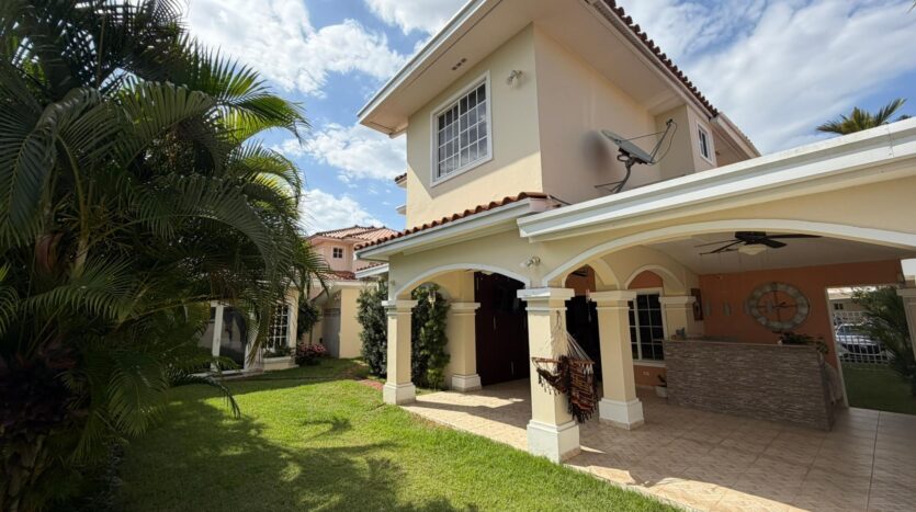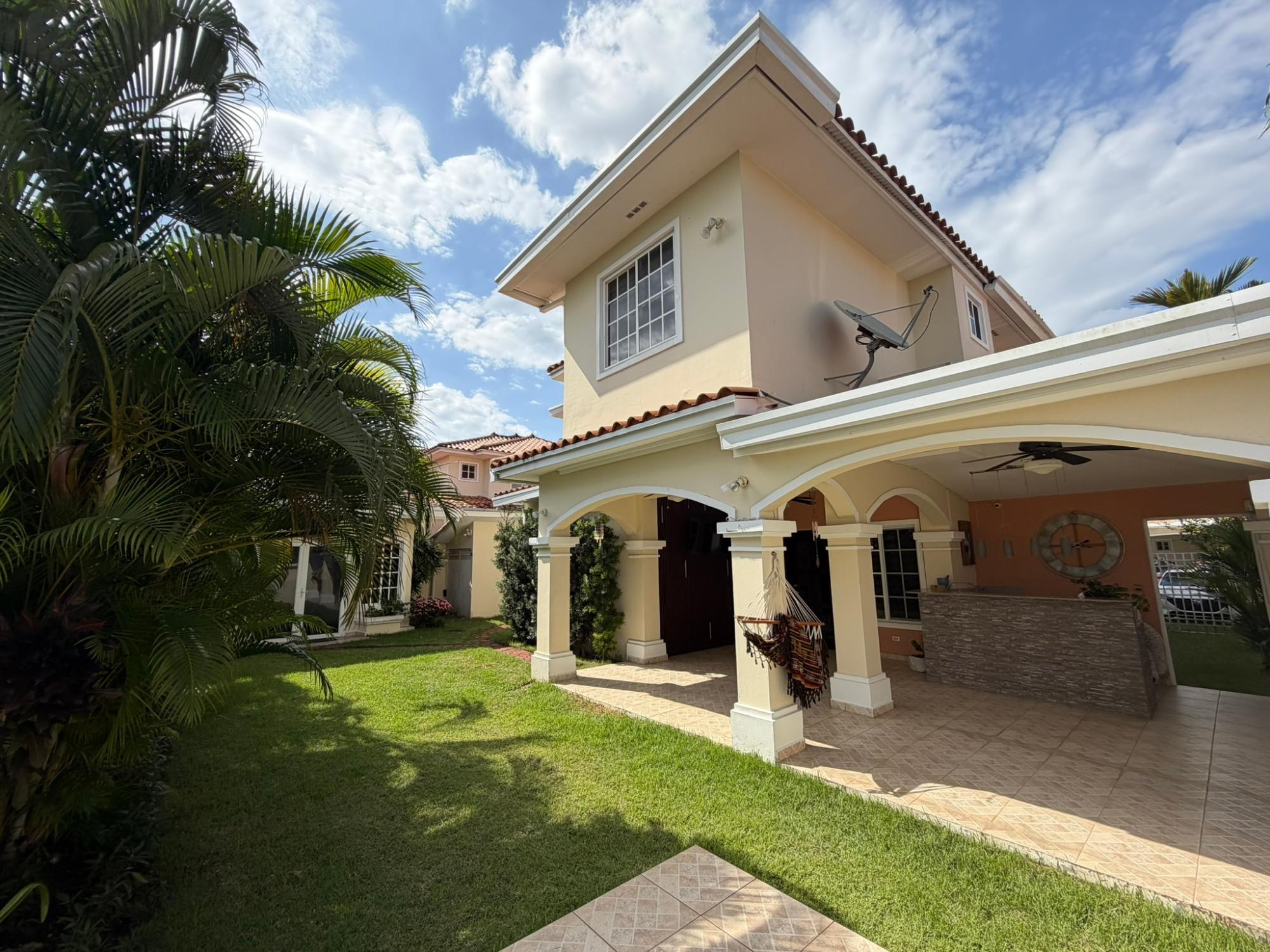 468.72 m2 de terreno, 401.17 m2 de construcción, 2 estacionamientos, 4 recámaras, 4.5 baños, habitación de servicio con su baño, área de lavandería, den, sala de TV, desayunador, cuarto de tanque de agua, casa anexa en el jardín donde actualmente tienen un gimnasio privado, área de BBQ, jardín interno. Área social con piscina, gym, BBQ, seguridad 24/7, costo de mantenimiento $ 200 (cubre seguridad, mantenimiento de áreas comunes, jardinería, fumigación). a 5 minutos del corredor Sur, a 10 minutos del centro financiero de la ciudad, a 10 minutos del aeropuerto Tocumen. A 5 minutos de centros comerciales, farmacias, colegios, super mercados y mucho más