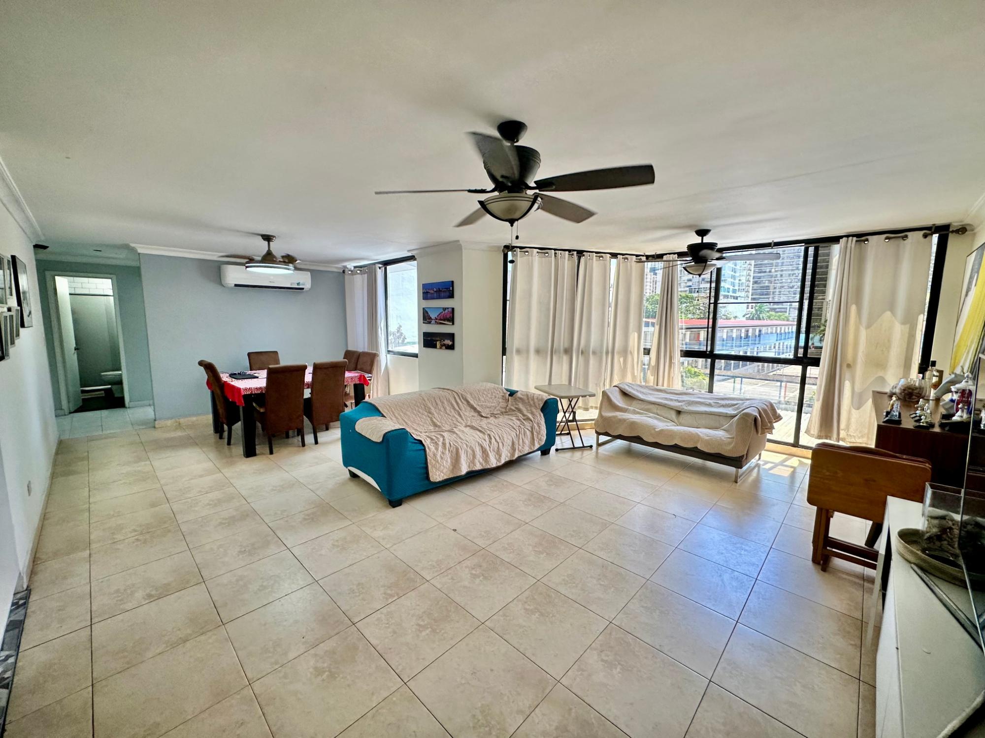 Amplio apartamento ubicado en PH Pelican Bay, San Francisco, una de las zonas más céntricas y convenientes de la ciudad, con fácil acceso a Parque Omar, Vía Porras, Calle 50, supermercados, restaurantes y comercios. Cuenta con 136.32 m², ofreciendo espacios cómodos y funcionales, ideales para familias o quienes buscan buena distribución en una ubicación estratégica. Características: – 3 recámaras – 2 baños – 1 estacionamiento – Cuarto y baño de servicio – Sala – comedor amplia Incluye: – Aires acondicionados – Lámparas – Abanicos – Cortinas – Línea blanca negociable Detalles adicionales: – Mantenimiento: $245 (incluye gas) – Año de construcción: 1993 – Área social con: Piscina y área de convivencia Ubicación privilegiada cerca de: – Parque Omar – Supermercados – Restaurantes – Farmacias – Fácil acceso a principales vías de la ciudad El PH no cuenta con estacionamientos de visita.