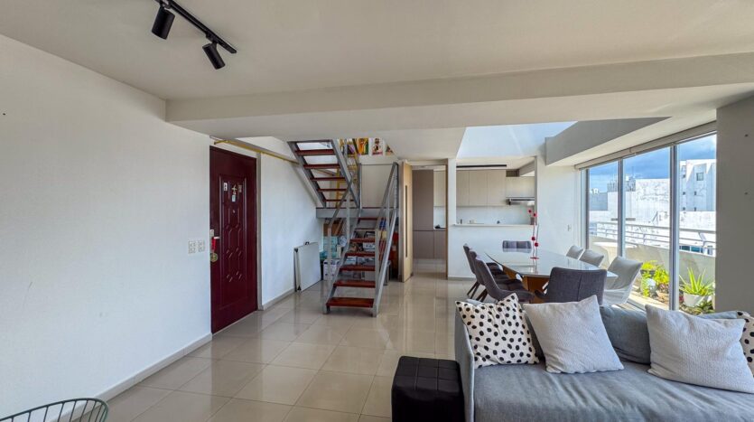 Apartamento de 3 recámaras de 174 m2 en PH CITRUS – San Francisco Piso alto · Doble altura · Cocina remodelada · Vistas inigualables a la ciudad Este espectacular apartamento de dos niveles en el reconocido PH CITRUS redefine el concepto de vivir en San Francisco. Ubicado en un piso alto, ofrece una experiencia residencial llena de luz, amplitud y una conexión visual privilegiada con el skyline de la ciudad. Distribución y espacios • Tres recámaras bien distribuidas, con excelente ventilación y privacidad. • Sala y comedor con doble altura que potencian la sensación de amplitud y elegancia. • Escalera moderna que conecta ambos niveles, aportando carácter arquitectónico. • Cocina completamente remodelada, con acabados contemporáneos, tope de alta calidad y diseño funcional ideal para quienes disfrutan cocinar y recibir invitados. • Vistas panorámicas que se extienden sobre la ciudad, ofreciendo un espectáculo urbano tanto de día como de noche. Estilo de vida Este apartamento combina diseño, comodidad y ubicación estratégica. PH CITRUS es conocido por su ambiente residencial, su cercanía a comercios, cafés, parques y accesos rápidos a las principales vías de la ciudad.