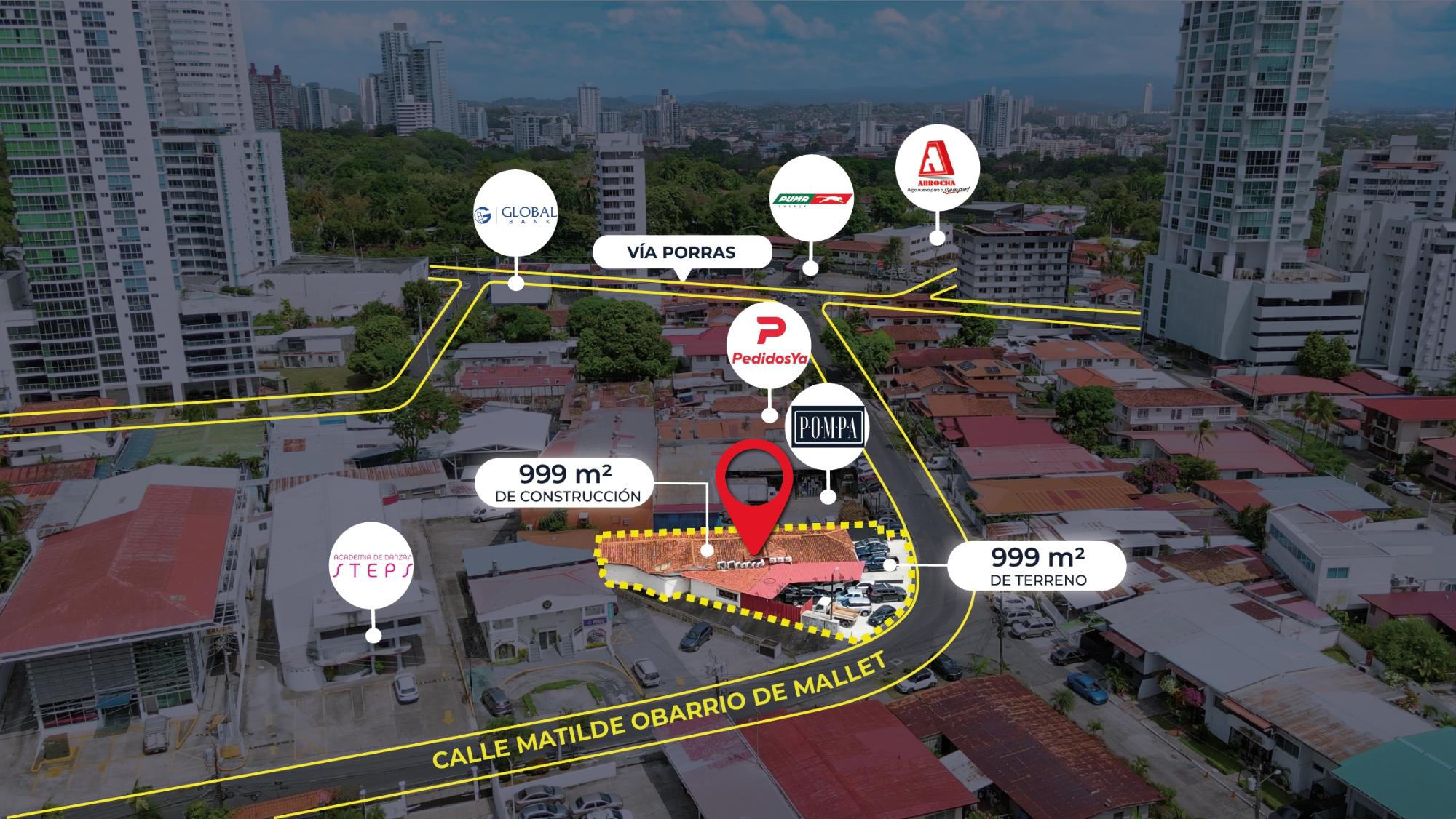 Son 2 lotes de terreno de 420m2 y 579.35m2 que suman 999.35m2. Los lotes están construidos en su totalidad en un local comercial totalmente remodelado. Cuenta con varias oficinas cerradas, área de cubículos, sala de reuniones, cafetería, recepción, 3 baños y estacionamientos.