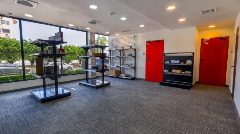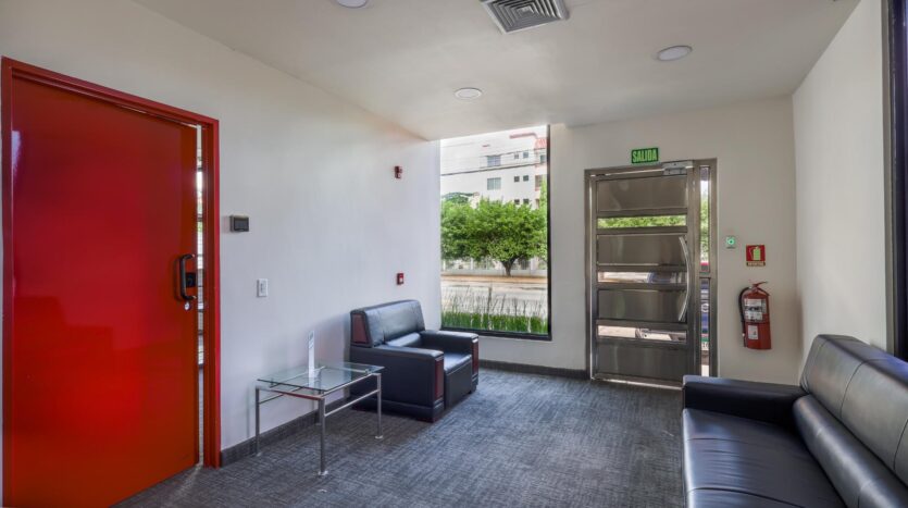 Consiste en un lote de terreno de forma rectangular y topografia mayormente plana, construido en su totalidad. El mismo cuenta con 20mts de frente y 40mts de fondo. Su edificación tipo galera, cuenta con un área de recepción, área de atención al público, oficinas y una batería de baños. En su parte frontal cuenta con un área abierta de estacionamientos, con piso de concreto armado. En la planta alta cuyo acceso es a través de una escalera de concreto, encontramos oficinas y área de cubículos, 2 servicios sanitarios para damas y caballeros de loza sanitaria importada y ventilador mecánico. La Galera construida con piso de concreto armado mide aprox. 540.70m2 e incluye área de cafetería y una oficina de reuniones y para cubículos. Entre otras mejoras incluye área de carga y descarga.