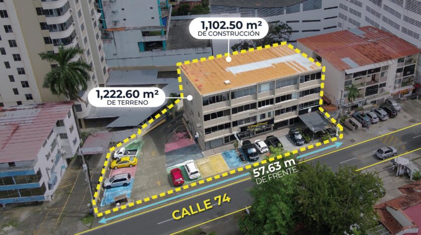 Edificio comercial con excelente ubicación y alta visibilidad cerca del Parque Omar La propiedad goza de una ubicación estratégica, situada justo detrás de Casa de las Baterías en Vía Porras y a solo 25 metros del Parque Omar, lo que le brinda gran exposición y fácil acceso. Se encuentra rodeada de bancos, restaurantes y diversos comercios, en una zona de alto tráfico y movimiento, ideal para actividades comerciales o corporativas. Además, cuenta con accesos rápidos desde Vía Porras y Calle 50. El edificio ofrece una distribución funcional y versátil: 12 oficinas 4 locales comerciales en planta baja 2 locales comerciales en el sótano 42 estacionamientos de visitas Área pavimentada de 800 m² Una excelente opción para inversionistas o empresas que buscan ubicación, visibilidad y capacidad operativa en el corazón de la ciudad.