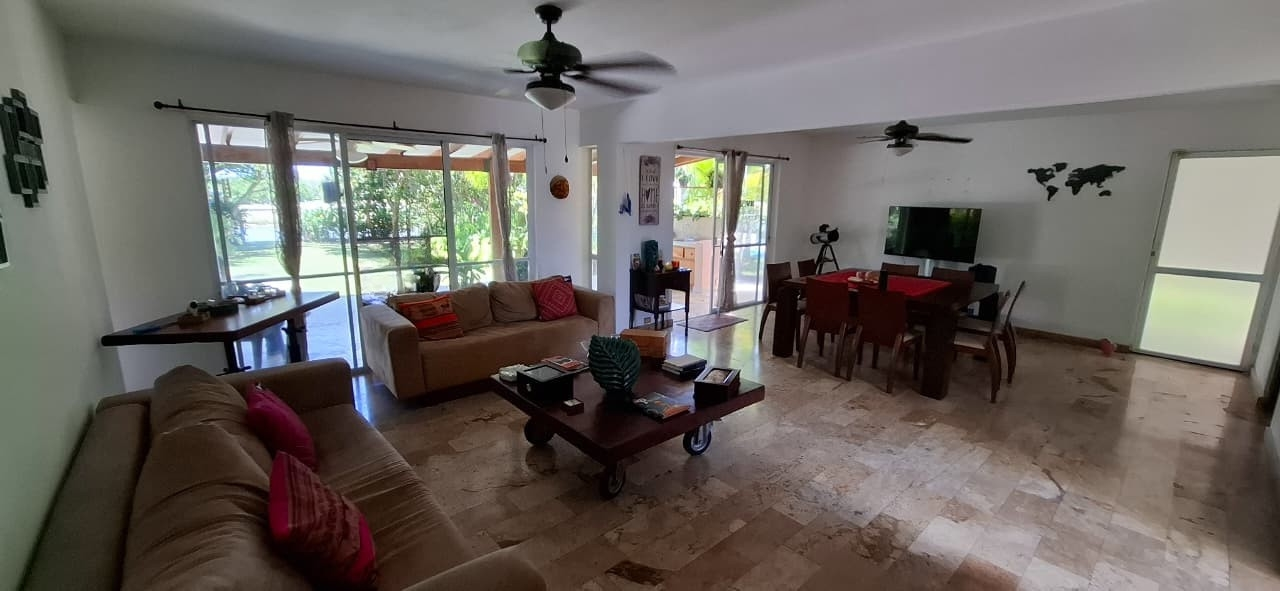 Casa en Venta – Villas del Decameron Área Cerrada – Planta Baja: Vestíbulo Sala Comedor Cocina (actualmente en proceso de remodelación; se entregará remodelada) Lavandería Depósito 1 recámara 1 baño completo ½ baño de visitas Pisos de mármol Techo de losa de hormigón con repello liso y cielo raso de gypsum Paredes de bloques repelladas y pintadas Ventanas corredizas de aluminio y vidrio Baños con artefactos importados, mármol en paredes hasta el cielo raso en la ducha y tina de baño Área Cerrada – Planta Alta: Sala familiar 3 recámaras 2 baños completos Pisos de mármol Cielo raso de gypsum Techo de tejas sobre estructura de madera vista En baños: losa de hormigón con repello liso Ventanas corredizas de aluminio y vidrio Baños con artefactos importados y acabados en mármol Descripción: La propiedad ofrece una distribución cómoda y funcional, con excelente iluminación natural y acabados de alta calidad en todos sus espacios. La cocina se encuentra actualmente en proceso de remodelación y será entregada completamente remodelada. Está ubicada dentro de un complejo residencial exclusivo y seguro en Villas del Decameron, con una ubicación privilegiada cerca del mar, ideal como residencia permanente, casa de playa o inversión.