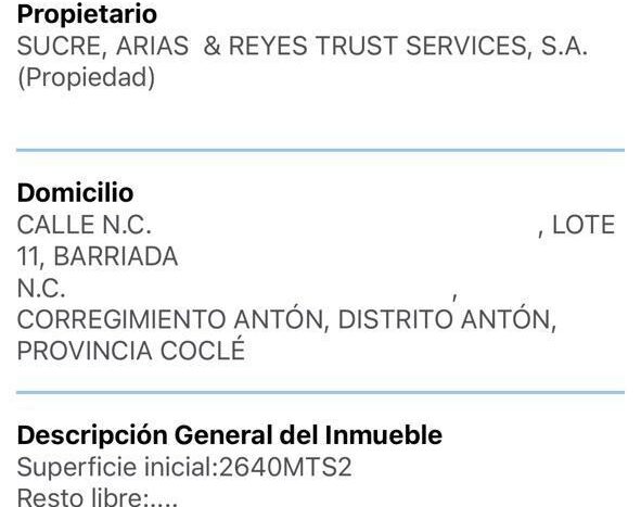 A solo a una hora y media de la Ciudad de Panama, y cerca de proyectos atractivos, como Coronad, Punta Barco, Buenaventura entre otros encuentras un Terreno de forma irregular y topografía mayormente plana, con pendientes fácilmente mecanizables, cubierta en sus áreas libres por grama natural y árboles típicos del sector, así como maleza de poco espesor en su parte posterior. El mismo se encuentra parcialmente limitado con alambre ciclón en tubos de acero y/o de púas en estacones de madera; mientras que en su parte frontal es de bloques de cemento repellados con puertas de acceso peatonal y vehicular de hierro. De acuerdo al Registro Público, la Finca cuenta con un área inscrita de 2,640.00m² con una casa unifamiliar que se hizo en 1947 y ha