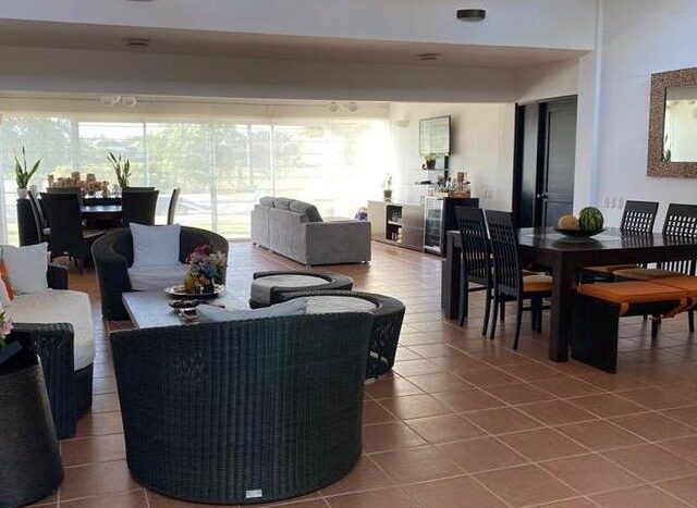 Villa ubicada en Costa Blanca Villas, desarrolladas por el grupo hotelero Decameron, tiene 5 cuartos cada uno con su baño privado, y Gazebo con medio baño y ducha abierta y area cubierta. Cuenta con Sala, Comedor, Cocina, Sala Familiar y area de juegos en el primer piso con 3 habitaciones, en el segundo piso con 2 habitaciones (Princípal y secundaria), sala familiar, abajo Cuarto y baño de servicio, en el area exterior cuenta con piscina, Jacuzzi, Bar. Lavanderia cubierta. Cuenta con 2 parqueaderos frente a la villa y un parqueadero lateral con techo para carro de golf o four wheel. Ubicado dentro de Costa Blanca Villas, con vista frontal al campo de golf, acceso al club de playa con playa, restaurante, bar y piscina para adultos y niños, parqueadero para los visitantes.