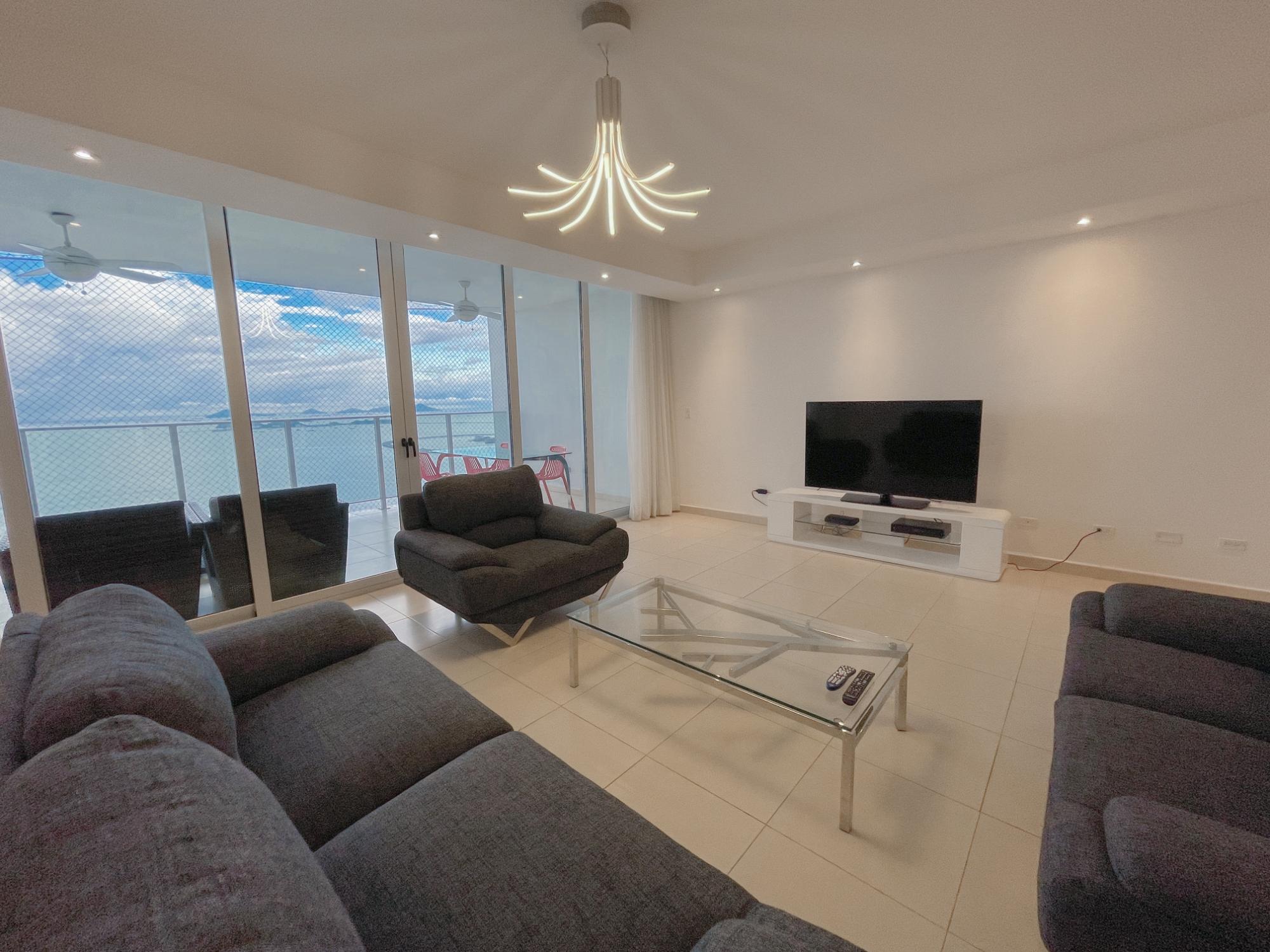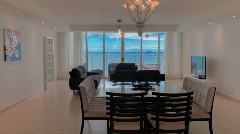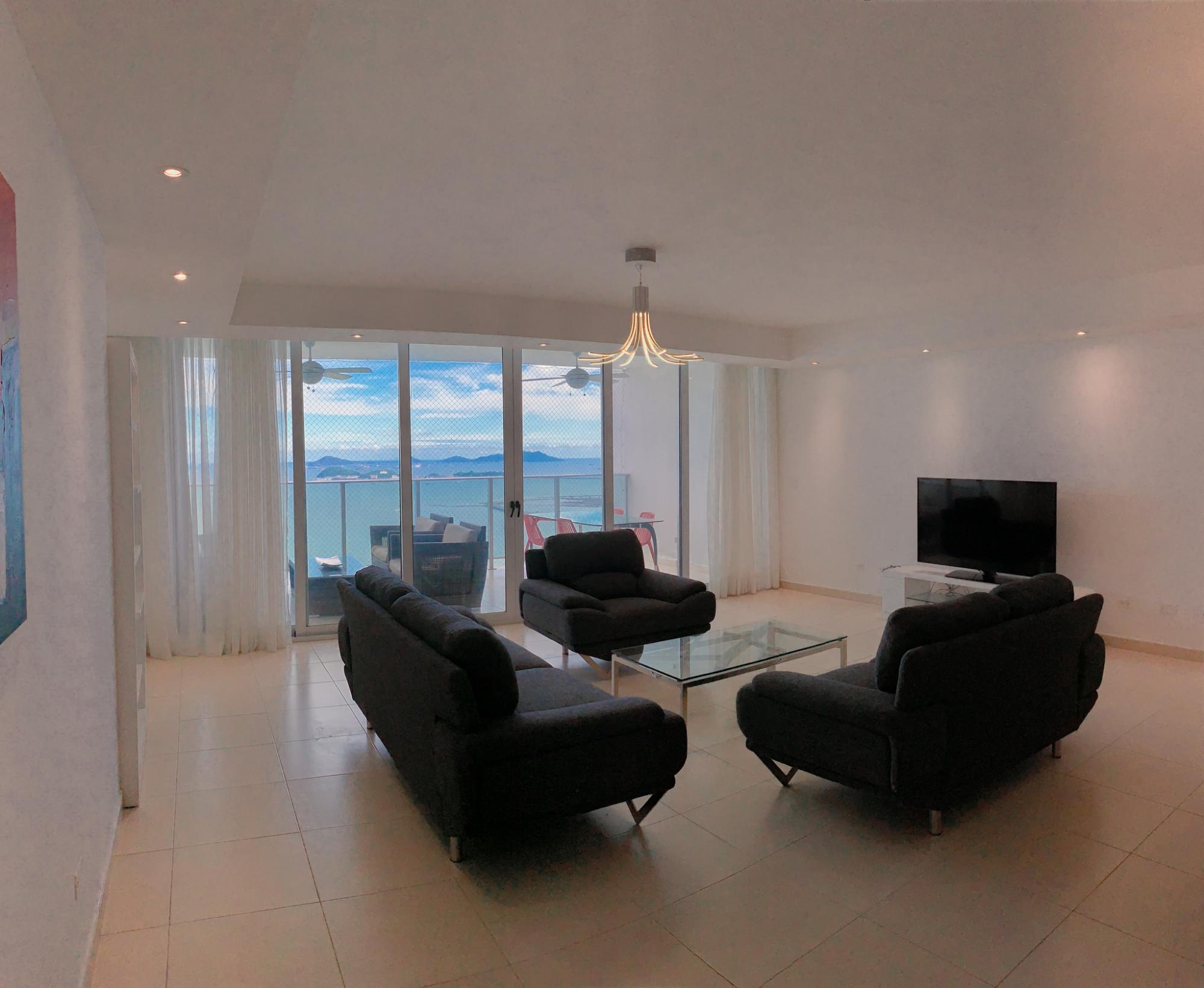 Oportunidad! Apartamento en Waters on the bay – Avenida Balboa – Piso alto con vista al mar. El apartamento cuenta con 267 m2 totalmente amoblado distribuido en amplia sala con iluminación natural, comedor, espacioso balcón con vista al mar, 3 recámaras, 3 baños, walk in closet, cocina con desayunador e imponente vista, cuarto y baño de servicio y 2 estacionamientos ubicados en el nivel 1. Además, el Edificio cuenta con un espectacular Lobby con doble altura, servicio de conserjería, seguridad 24/ 7, amplia área social con piscina, jacuzzi, sala de eventos, cuarto de juegos para niños interno y externo, cancha de básquet, gimnasio equipado y sauna. El espacio ideal para Usted y los suyos!