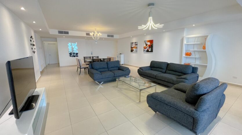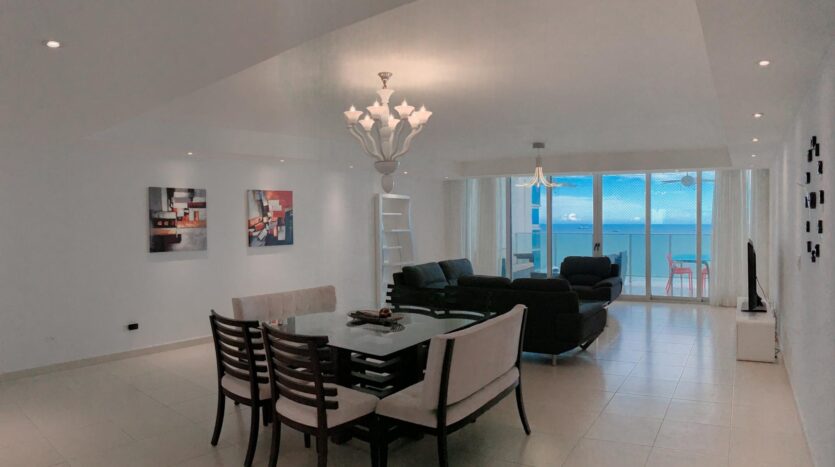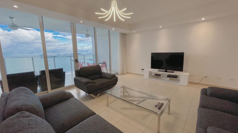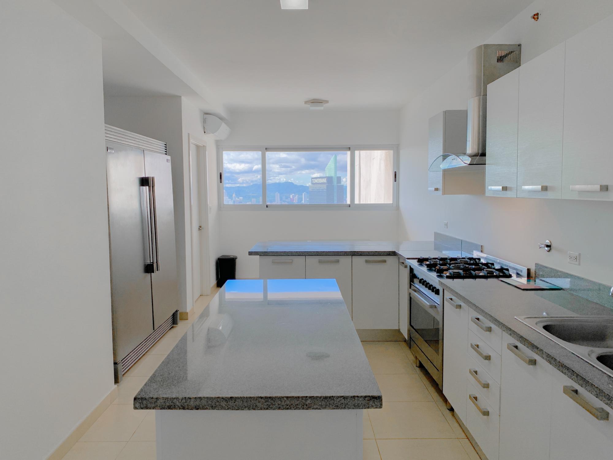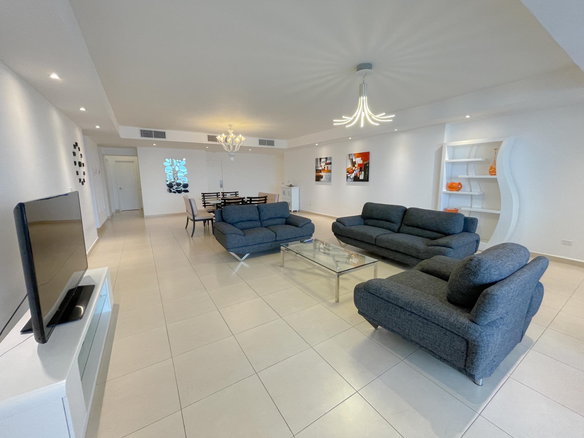 Oportunidad! Apartamento en Waters on the bay – Avenida Balboa – Piso alto con vista al mar. El apartamento cuenta con 267 m2 totalmente amoblado distribuido en amplia sala con iluminación natural, comedor, espacioso balcón con vista al mar, 3 recámaras, 3 baños, walk in closet, cocina con desayunador e imponente vista, cuarto y baño de servicio y 2 estacionamientos ubicados en el nivel 1. Además, el Edificio cuenta con un espectacular Lobby con doble altura, servicio de conserjería, seguridad 24/ 7, amplia área social con piscina, jacuzzi, sala de eventos, cuarto de juegos para niños interno y externo, cancha de básquet, gimnasio equipado y sauna. El espacio ideal para Usted y los suyos!